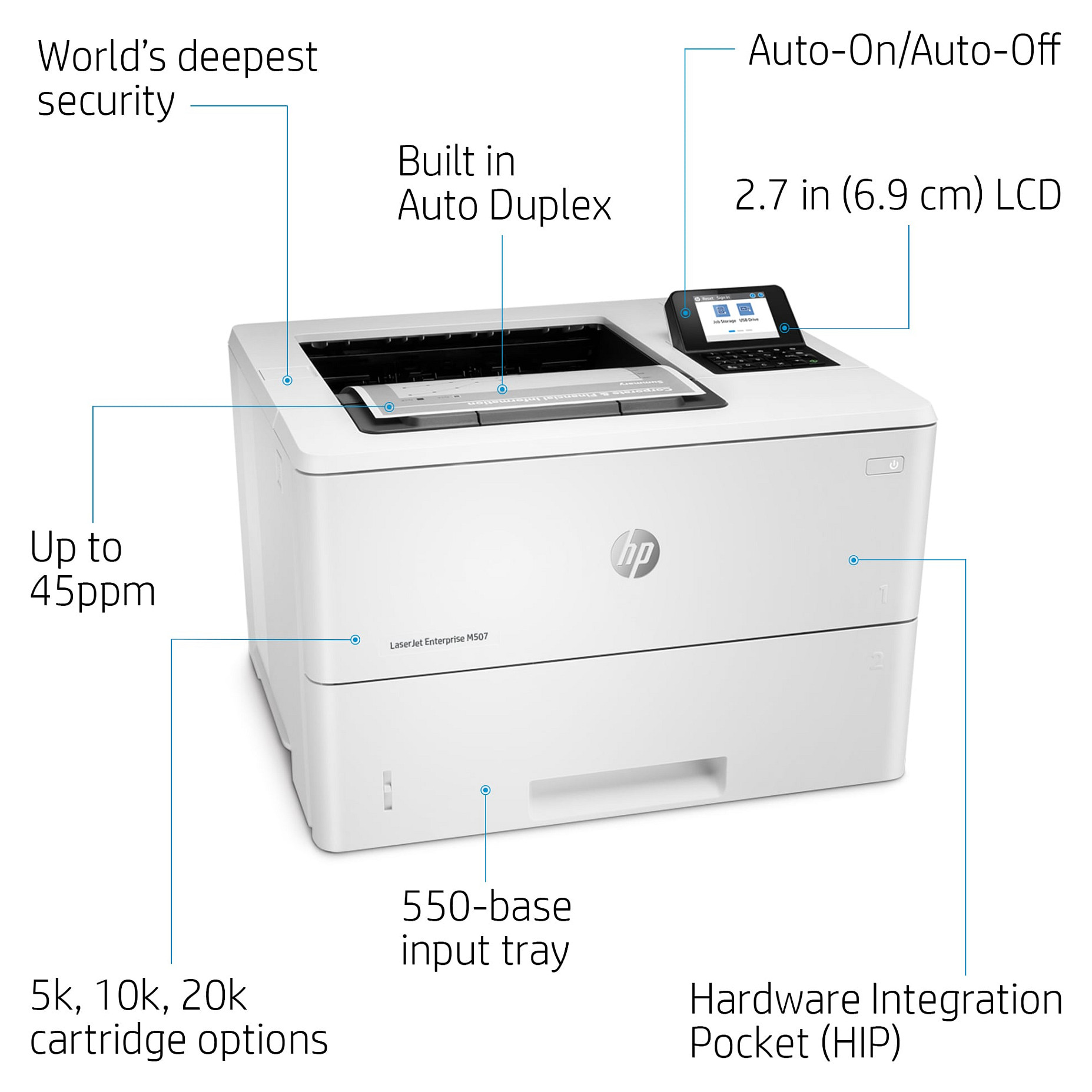 Wählen Sie einen HP LaserJet Enterprise Drucker, der entwickelt wurde, um Geschäftslösungen sicher und effizient zu handhaben und mit dem HP EcoSmart Schwarz Toner Energie zu sparen. Bewältigen Sie mühelos die Anforderungen Ihres wachsenden Unternehmens mit einem Drucker, auf den Sie zählen können.[1]