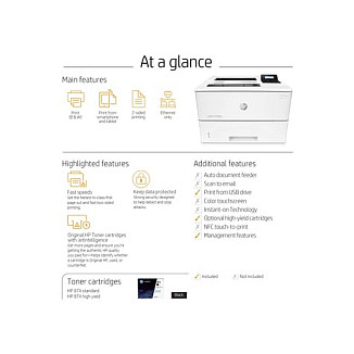 Profitieren Sie im Büro von beeindruckender Druckgeschwindigkeit und -leistung. Dieser energiesparende Drucker ist schnell betriebsbereit[1] und schützt Ihre Arbeit mit herausragenden Sicherheitsfunktionen. HP Original Tonerkartuschen mit JetIntelligence drucken mehr Seiten.[2]