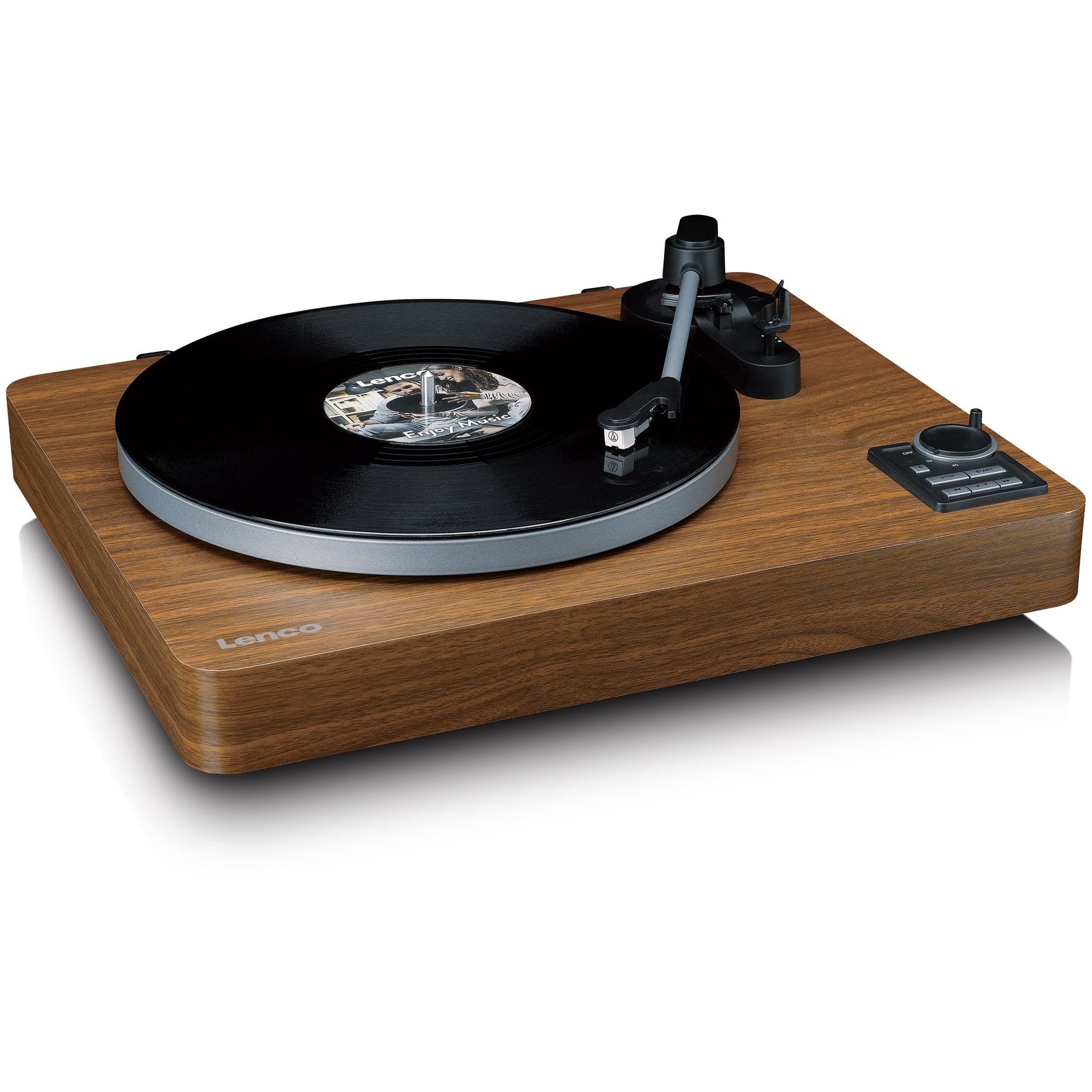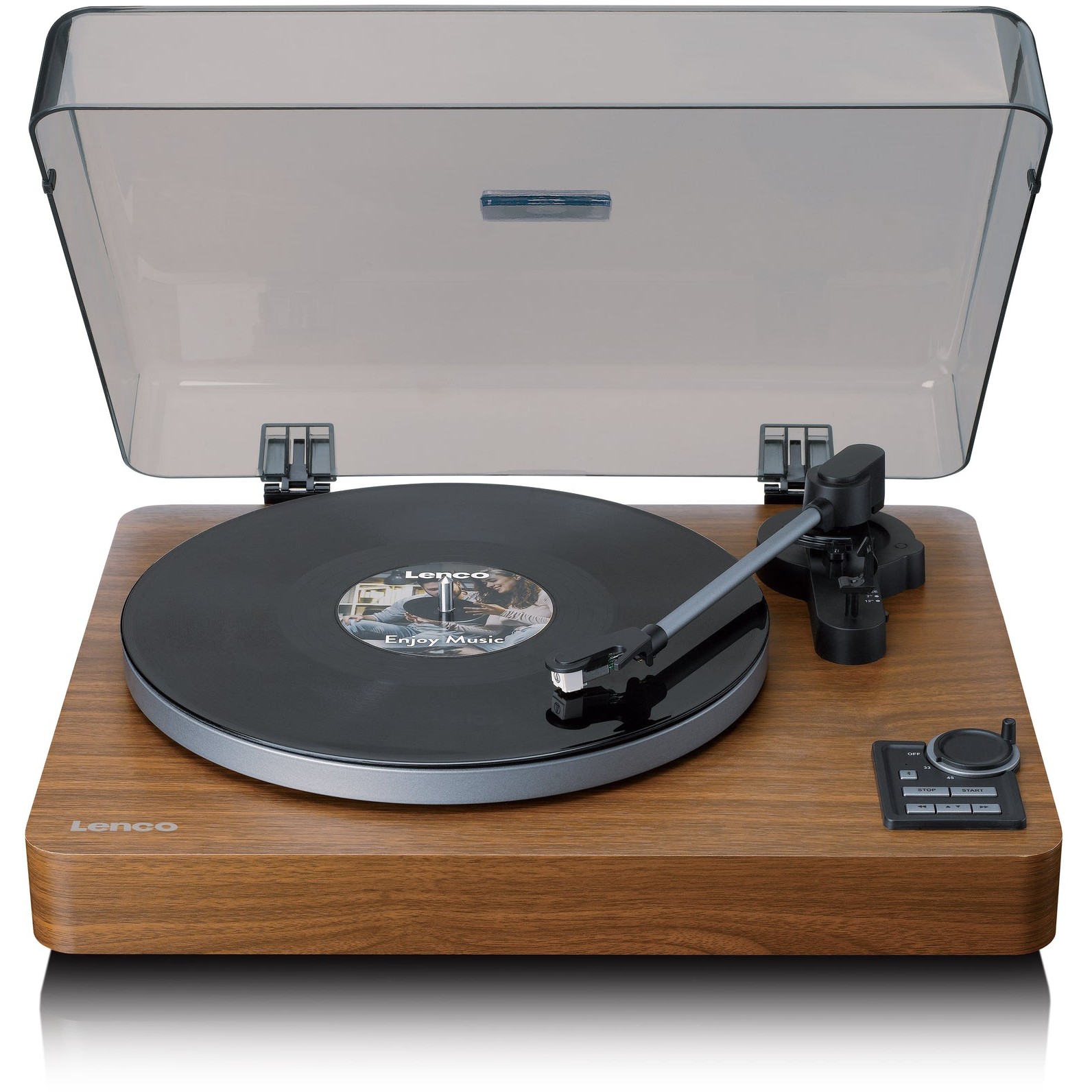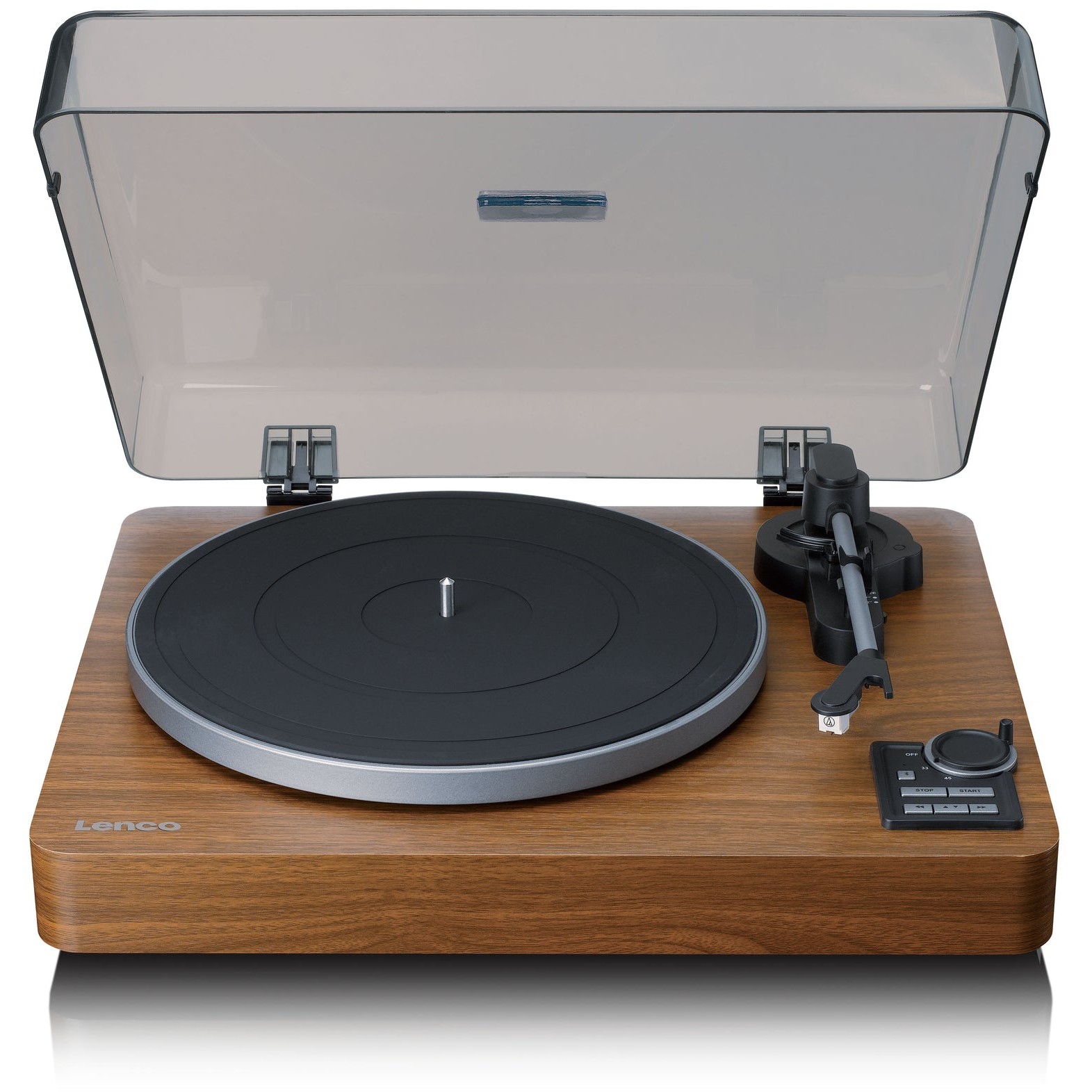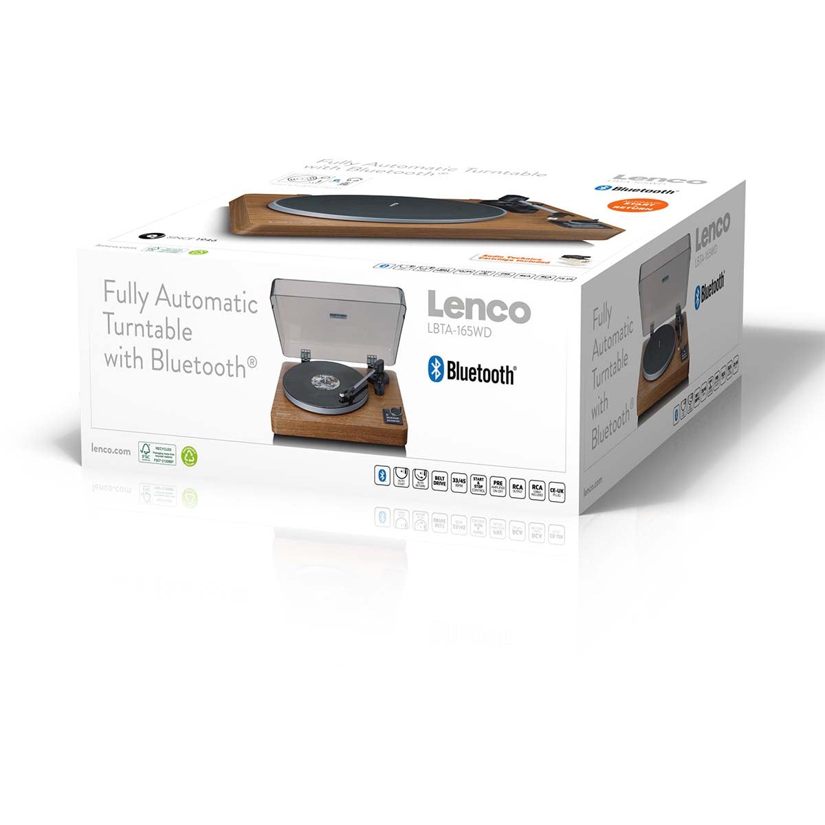 Lenco LBTA-165WD. Typ: Audio-Plattenspieler mit Riemenantrieb, Betrieb: Automatisch, Produktfarbe: Schwarz, Holz. Bluethooth-Reichweite: 10 m. Netzteiltyp: AC, Netzteil Eingansgsspannung: 100 - 240 V, Netzteilfrequenz: 50 / 60 Hz. Breite: 440 mm, Tiefe: 135 mm, Höhe: 383 mm. Mitgelieferte Kabel: AC, RCA