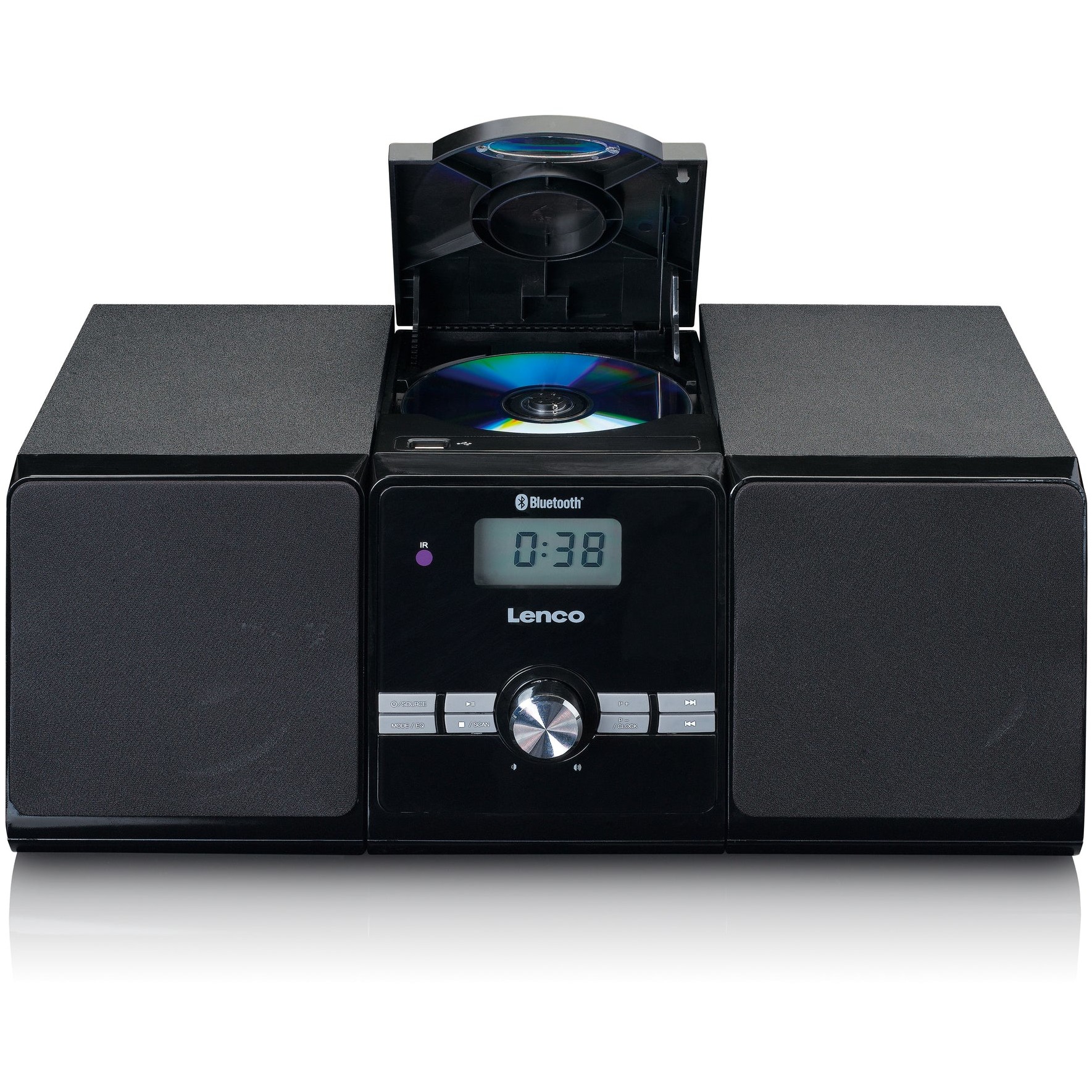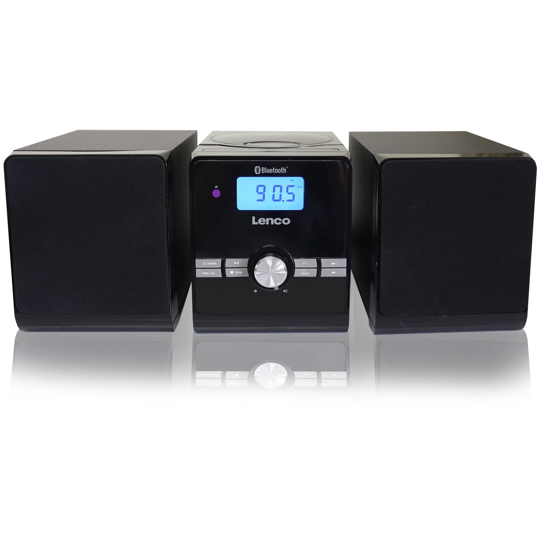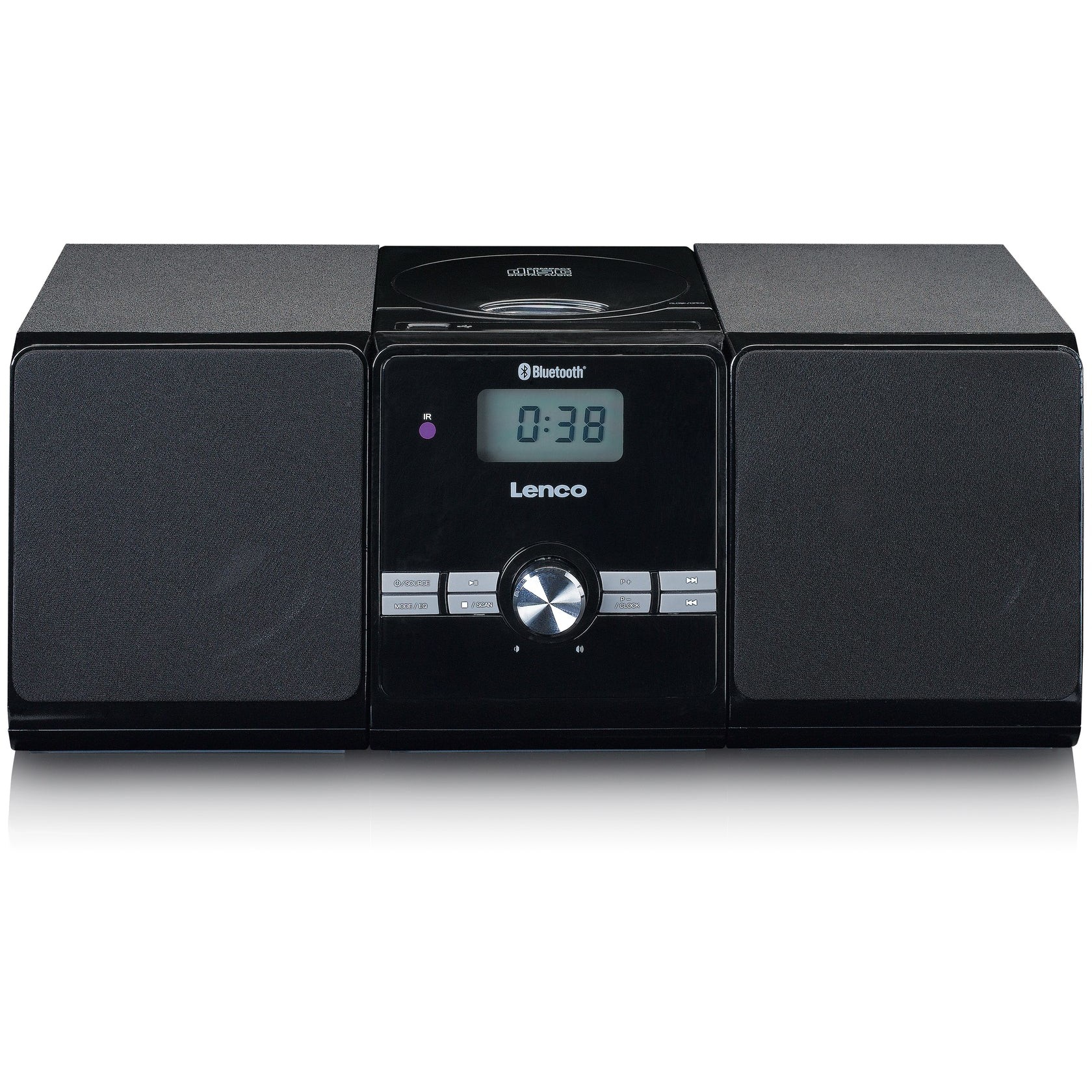 Die Kompaktanlage MC-030BK von Lenco ist ein komplettes HiFi-Set mit 2 Holzlautsprechern und einem eingebauten Verstärker. Die Lautsprecher haben jeweils eine Leistung von 5 Watt RMS. So können Sie Ihre Lieblingsmusik mit einem raumfüllenden Klang auf der Couch hören, während Sie sie mit der Fernbedienung steuern.