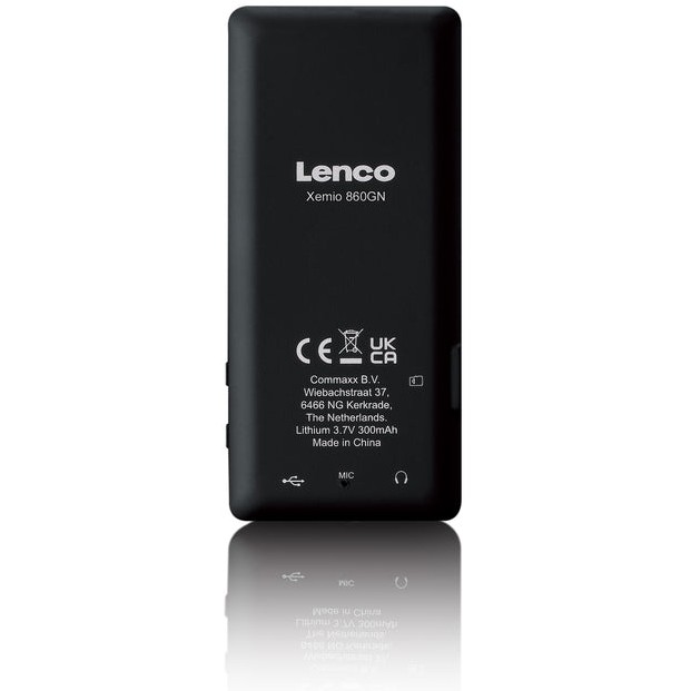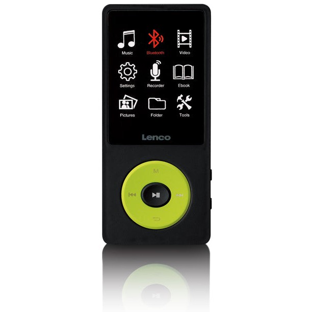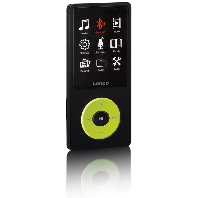 Lenco Xemio-860GN. Typ: MP3 Spieler. Gesamtspeicherkapazität: 8 GB. Display: LCD. Integrierter Kartenleser. Lautstärkeregler: Tasten. Kontinuierliche Audiowiedergabezeit: 18 h. Gewicht: 60 g. Produktfarbe: Schwarz, Limette. Kopfhörer enthalten
