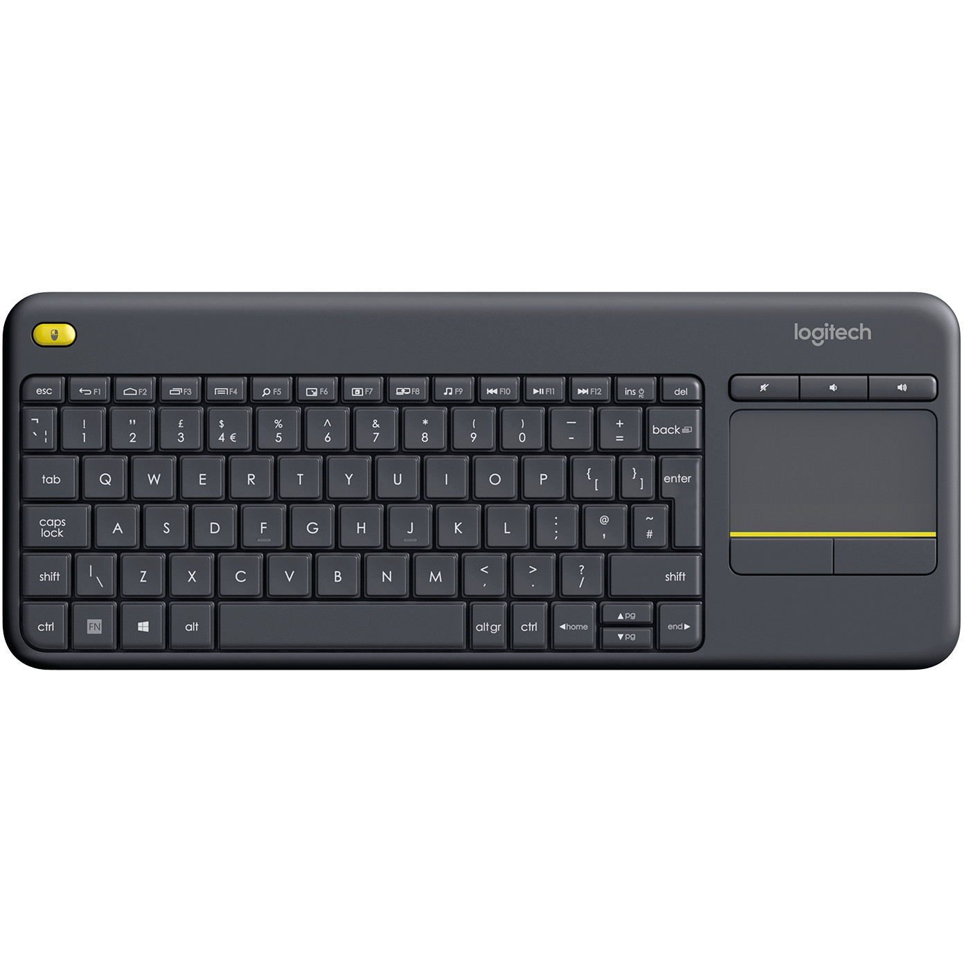 Logitech K400 Plus. Tastatur Formfaktor: Mini. Tastatur-Stil: Gerade. Übertragungstechnik: Kabellos, Geräteschnittstelle: RF Wireless, Tastaturaufbau: QWERTY, Empfohlene Nutzung: Haus. Produktfarbe: Schwarz