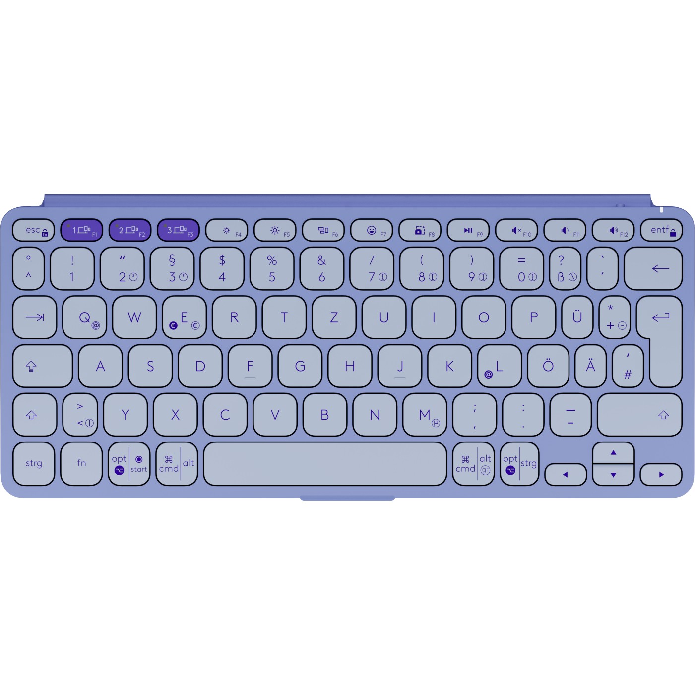 Logitech Keys-To-Go 2. Tastatur Formfaktor: Mini. Tastatur-Stil: Gerade. Übertragungstechnik: Kabellos, Geräteschnittstelle: Bluetooth, Tastatur-Switch: Scherenschalter, Tastaturaufbau: QWERTZ, Empfohlene Nutzung: Universal. Produktfarbe: Lila