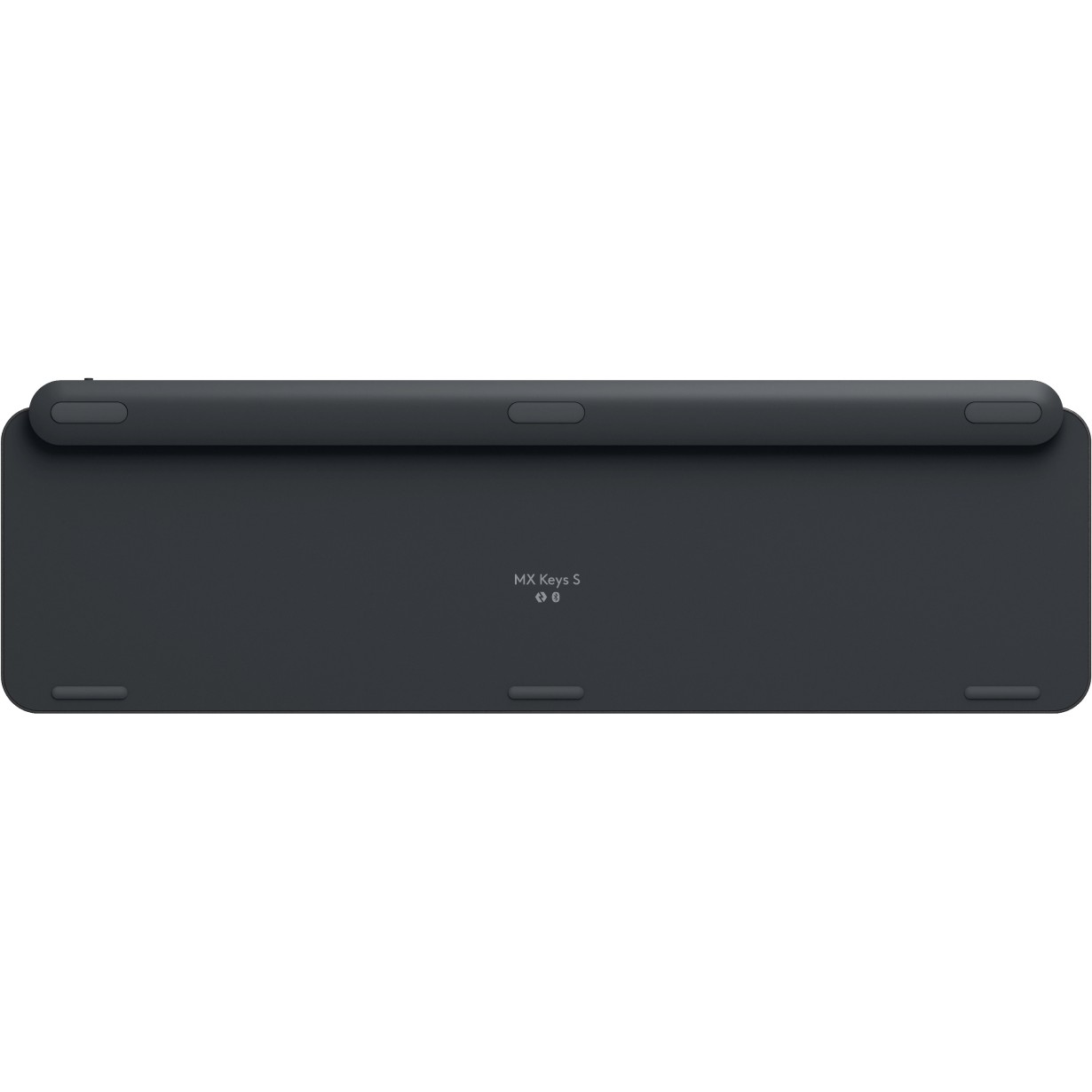 Logitech MX Keys S. Tastatur Formfaktor: Volle Größe (100%). Tastatur-Stil: Gerade. Übertragungstechnik: Kabellos, Geräteschnittstelle: RF Wireless + Bluetooth, Tastatur-Switch: Scherenschalter, Tastaturaufbau: QWERTY. Typ der Hintergrundbeleuchtung: LED. Empfohlene Nutzung: Universal. Produktfarbe: Graphit