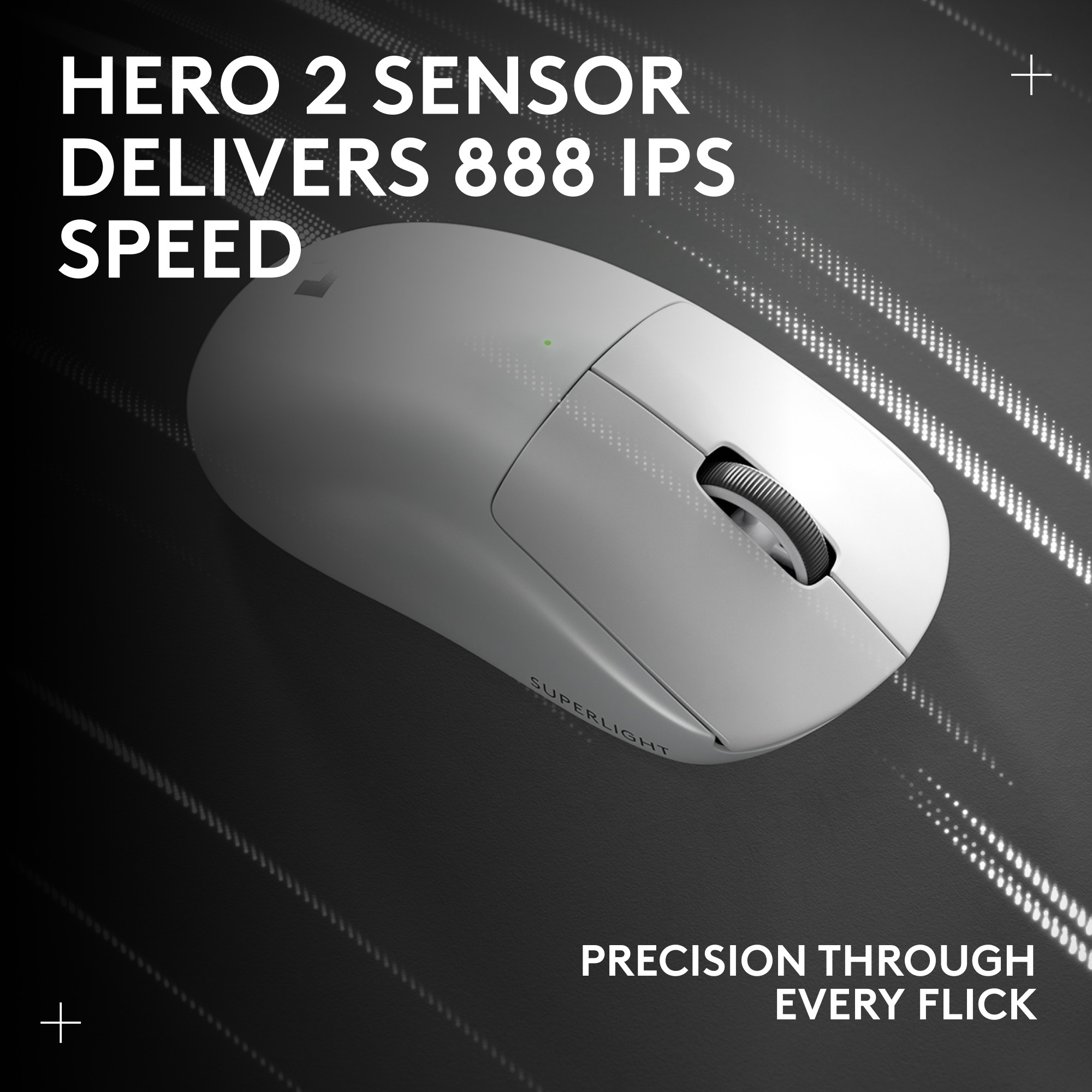 Logitech G PRO X SUPERLIGHT 2. Formfaktor: rechts. Bewegungerfassungs Technologie: Optisch, Geräteschnittstelle: RF Wireless, Bewegung Auflösung: 32000 DPI, Reaktionszeit: 0,5 ms, Tastentyp: Gedrückte Tasten, Knopfanzahl: 5, Scroll Typ: Rad, Beschleunigung (Max.): 40 G. Energiequelle: Batterien. Produktfarbe: Weiß