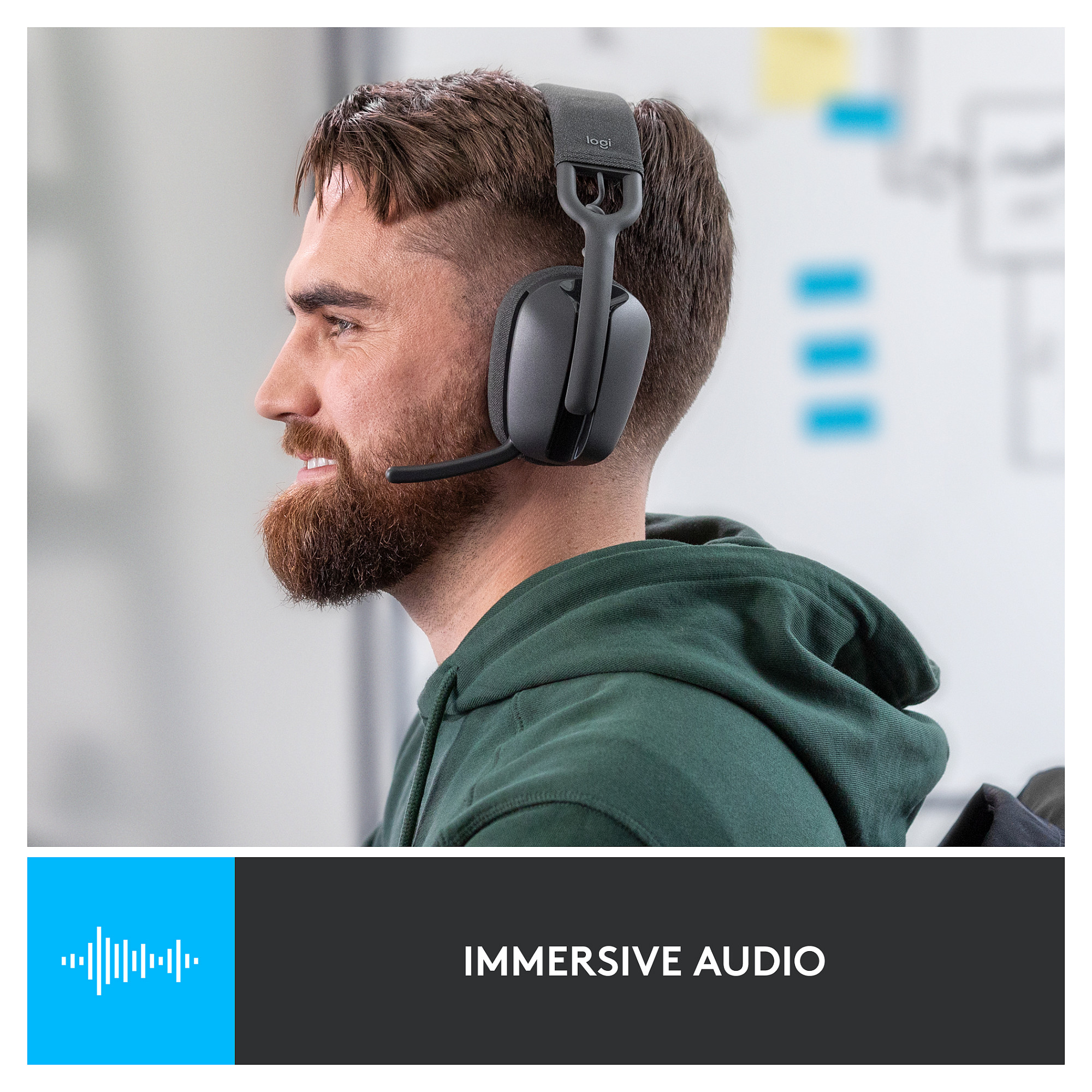 Bleiben Sie stilsicher mit dem kabellosen Zone Vibe 100 Kopfhörer. Zone Vibe ist perfekt für das Homeoffice und liefert immersiven Klang bei der Arbeit und in der Freizeit.