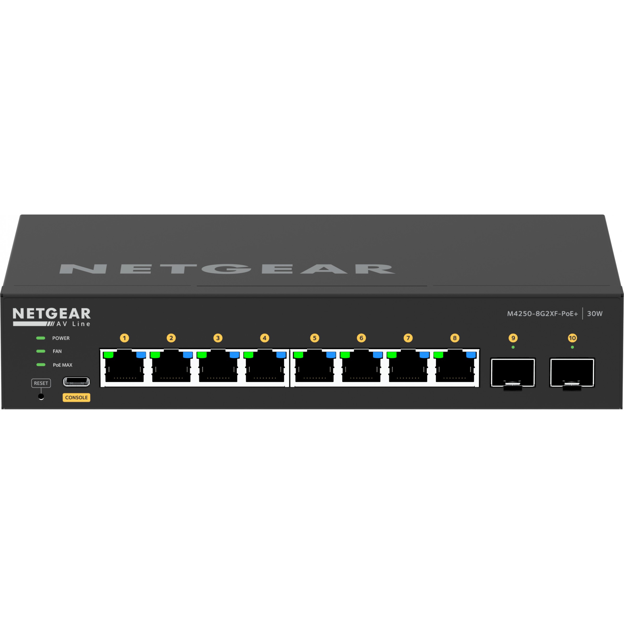 NETGEAR GSM4210PX-100EUS. Switch-Typ: Managed, Switch-Ebene: L2/L3. Basic Switching RJ-45 Ethernet Ports-Typ: Gigabit Ethernet (10/100/1000), Anzahl der basisschaltenden RJ-45 Ethernet Ports: 8. Vollduplex. MAC-Adressentabelle: 16000 Eintragungen, Routing-/Switching-Kapazität: 24 Gbit/s. Netzstandard: IEEE 802.1D, IEEE 802.1Q, IEEE 802.1ab, IEEE 802.1s, IEEE 802.1w, IEEE 802.1x, IEEE 802.3ad, IEEE.... Power over Ethernet (PoE). Rack-Einbau