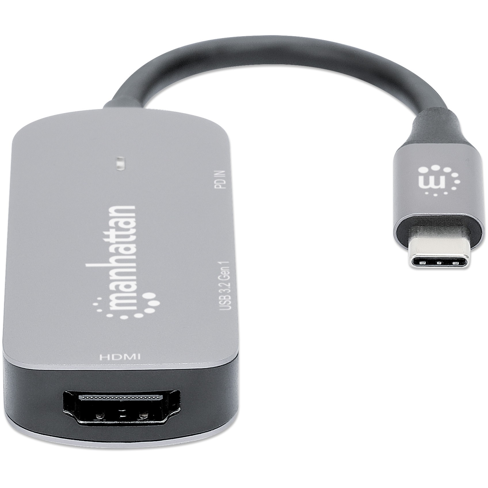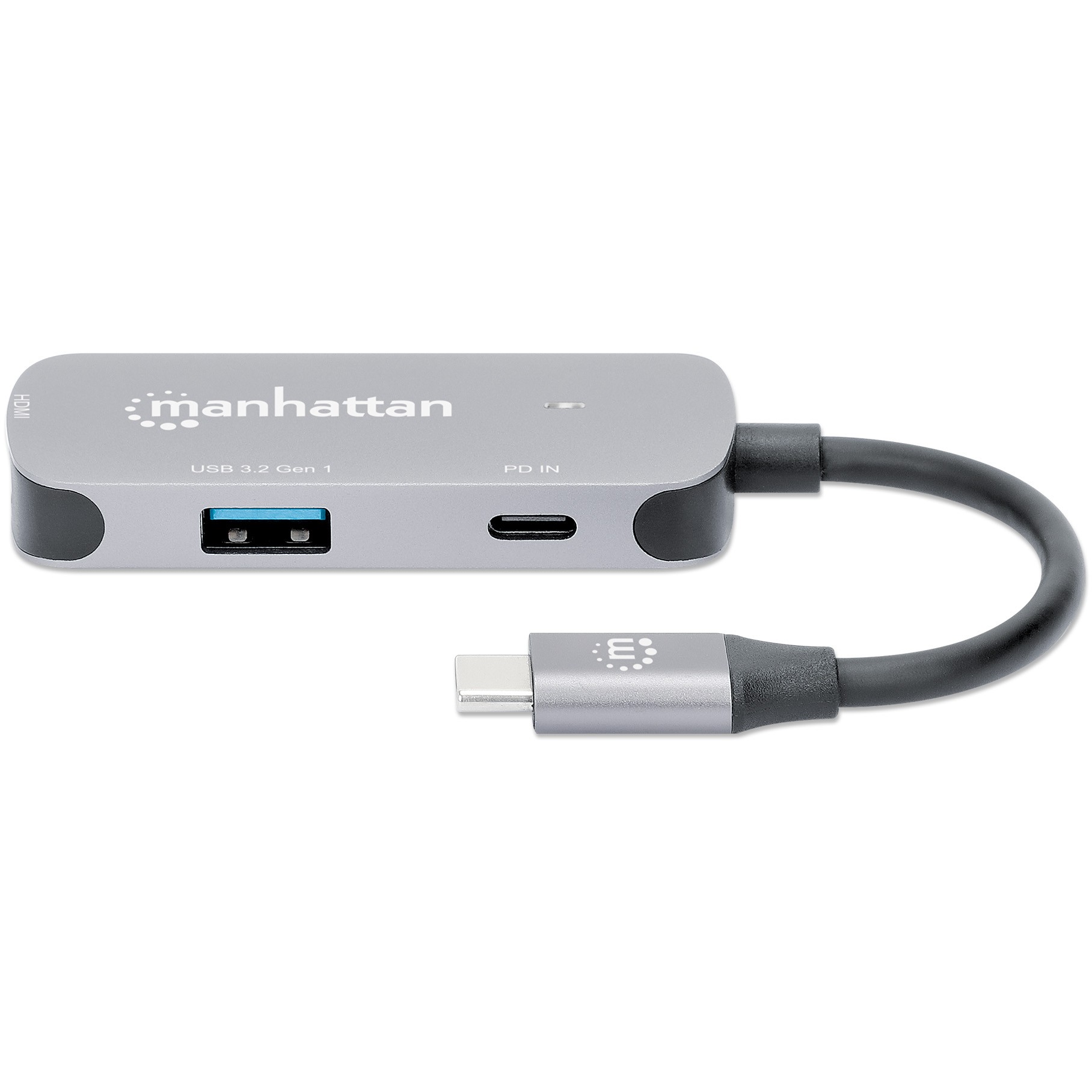 Der Manhattan USB-C auf HDMI 3-in-1 Docking-Konverter bildet eine schnelle, einfache und praktische Schnittstelle zwischen USB Typ C-Geräten (Laptop, Computer, MacBook, Chromebook, Tablet, etc.) und HDMI-Display (Monitor, Fernseher, Beamer) in 4K bei 30 Hz. Durch den USB-A-Port mit USB 3.2 Gen 1 (früher USB 3.0) zum Anschluss von Maus oder Tastatur taugt dieser Adapter auch für eine Mini-Workstation oder zum Anschluss von USB-Stick, USB-Drucker oder USB-Festplatte. Die Installation bleibt mit Plug & Play schnell und einfach.