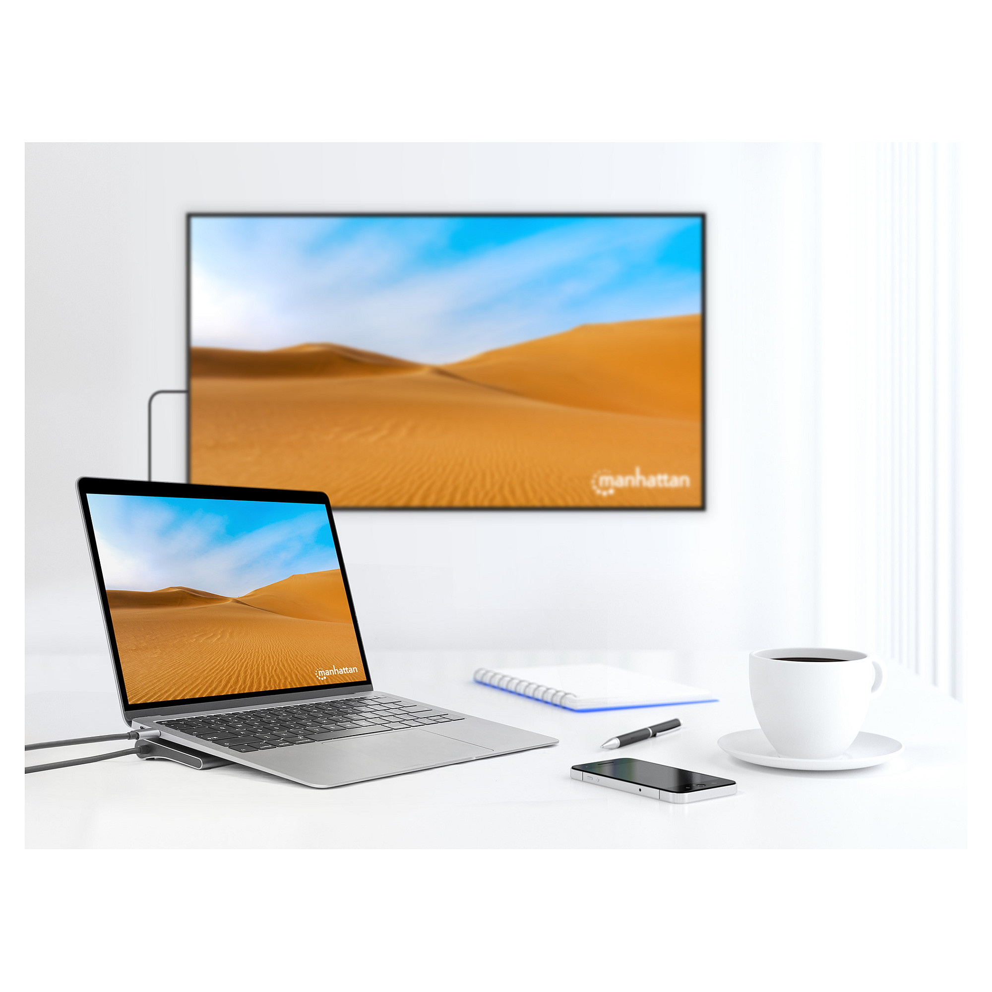 Erweitern Sie die Anschlussmöglichkeiten Ihres Geräts mit diesem Manhattan 12-in-1-Multiport-Adapter. Die vielseitige Dockingstation füllt die Anschlusslücken in Ihrem Laptop oder MacBook® und bietet wichtige Ports wie HDMI, DisplayPort, Power Delivery, Ethernet (RJ45), Kartenleser, Audio und USB.