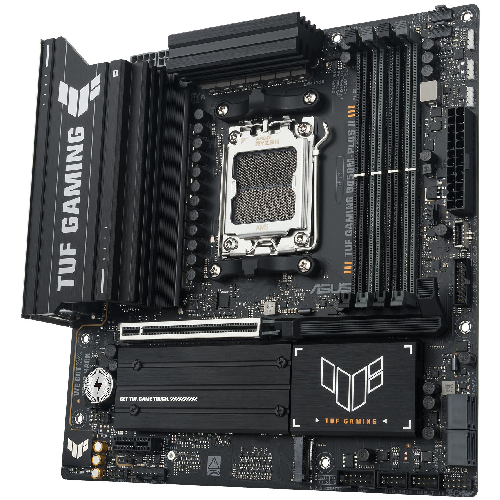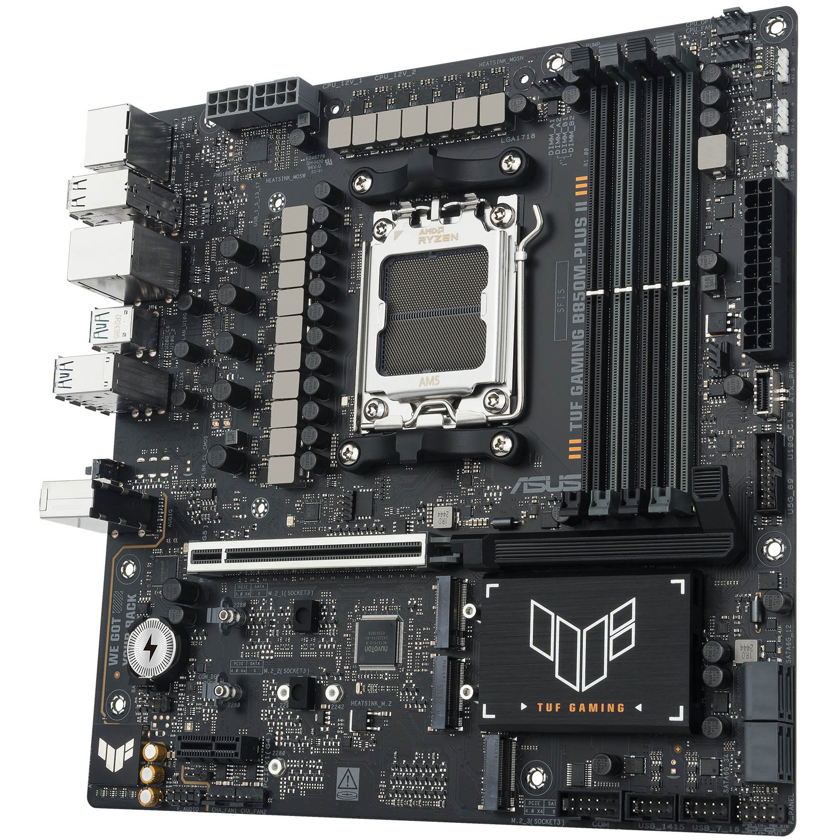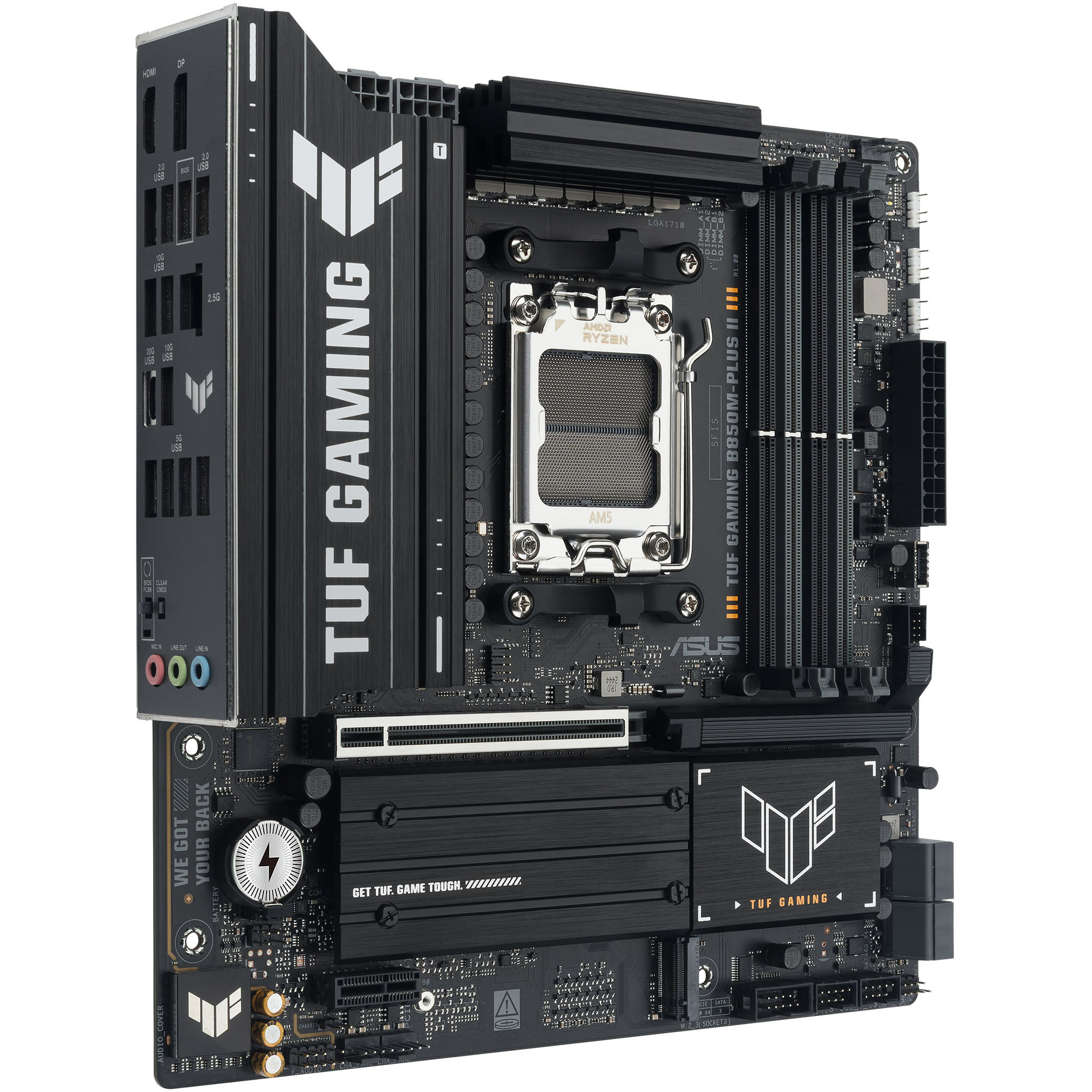 Das ASUS TUF GAMING B850M-PLUS II nimmt alle wesentlichen Elemente der neuesten AMD Ryzen™ Prozessoren auf und kombiniert sie mit spieletauglichen Funktionen und bewährter Haltbarkeit. Mit Komponenten in Militärqualität, einer verbesserten Stromversorgungslösung und einem umfassenden Kühlsystem übertrifft dieses Mainboard alle Erwartungen und bietet eine felsenfeste und stabile Leistung für Gaming-Marathons. TUF GAMING-Mainboards werden außerdem strengen Härtetests unterzogen, um sicherzustellen, dass sie Bedingungen standhalten, bei denen andere versagen könnten. Diese Plattform bietet die Leistung und Konnektivität, die fortschrittliche KI-PC-Anwendungen erfordern.