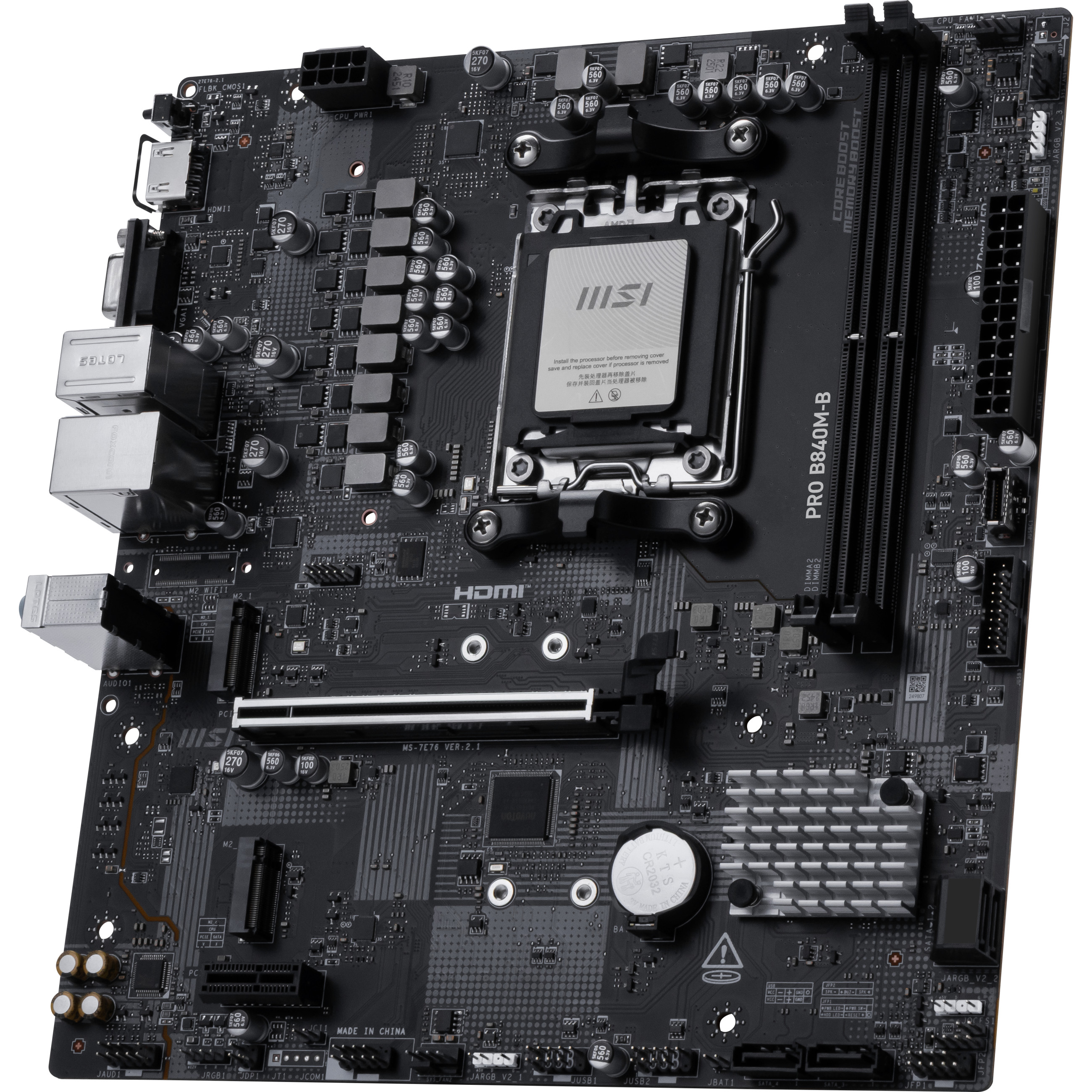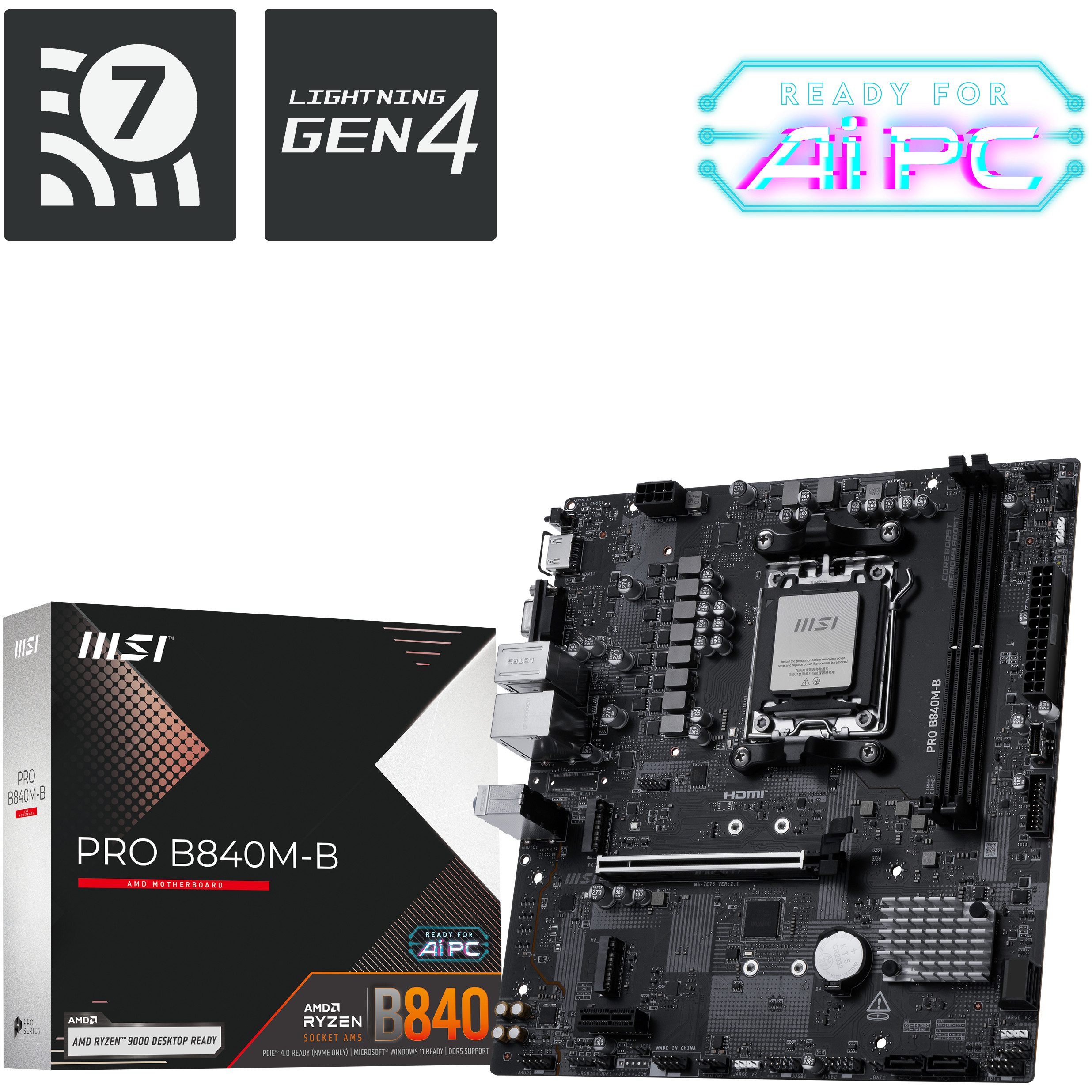 MSI PRO B840M-B. Prozessorhersteller: AMD, Prozessorsockel: Sockel AM5, Kompatible Prozessoren: AMD Ryzen 7000 Series, AMD Ryzen 8000 Series, AMD Ryzen 9000 Series. Unterstützte Arbeitsspeicher: DDR5-SDRAM, RAM-Speicher maximal: 128 GB, Arbeitsspeicher Typ: DIMM. Unterstützte Speicherlaufwerk-Schnittstellen: M.2, Micro SATA III, Unterstützte Speicherlaufwerke: HDD & SSD, RAID Level: 0, 1, 10. Ethernet Schnittstellen Typ: 2.5 Gigabit Ethernet, LAN-Controller: Realtek RTL8125D. Komponente für: PC, Motherboardformfaktor: micro ATX, Motherboard Chipsatz Familie: AMD