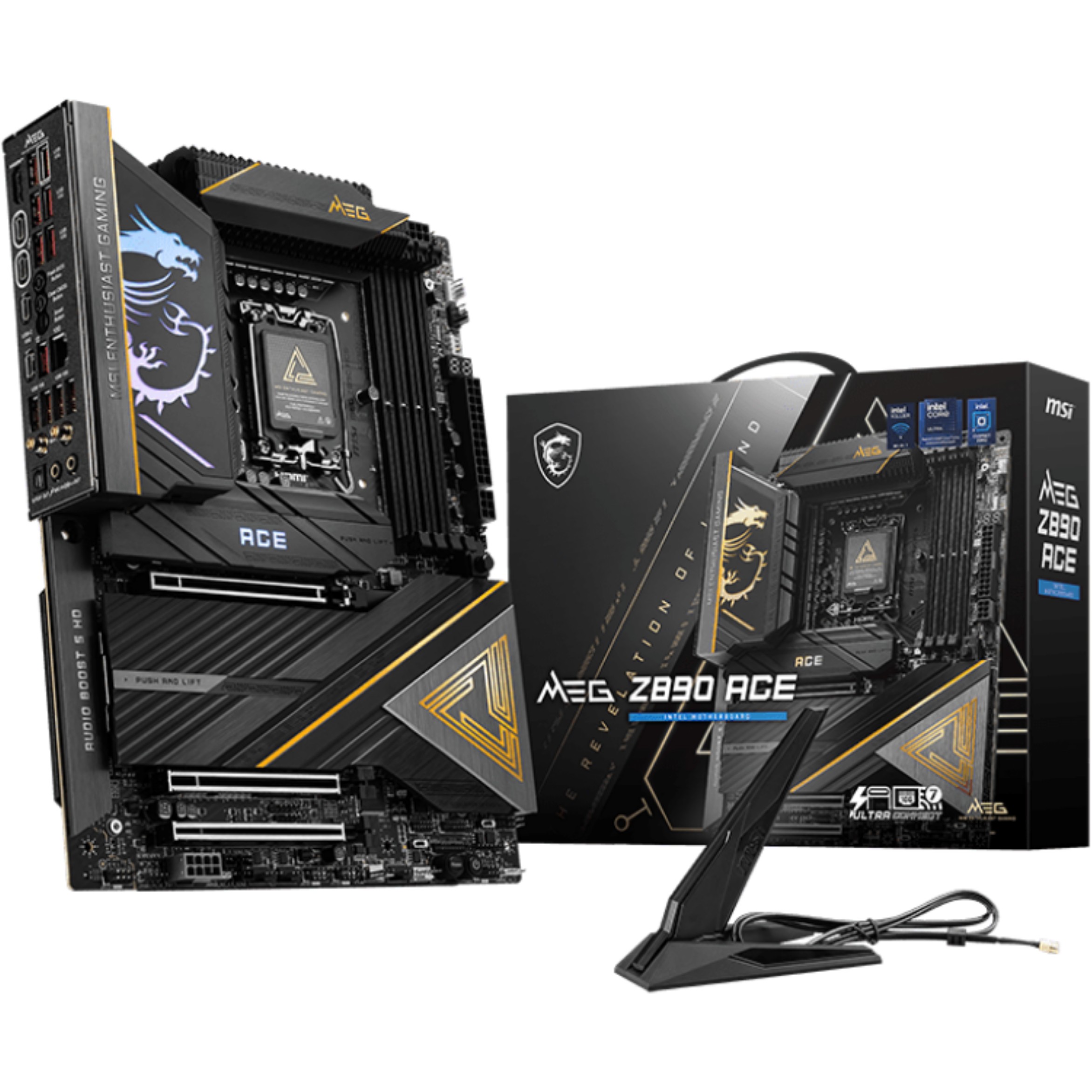 MSI MEG Z890 ACE. Prozessorhersteller: Intel, Prozessorsockel: LGA 1851 (Socket V1), Kompatible Prozessoren: Intel Core Ultra (Series 2). Unterstützte Arbeitsspeicher: DDR5-SDRAM, RAM-Speicher maximal: 256 GB, Arbeitsspeicher Typ: DIMM. Unterstützte Speicherlaufwerk-Schnittstellen: M.2, SATA III, Unterstützte Speicherlaufwerke: HDD & SSD, RAID Level: 0, 5, 10. Ethernet Schnittstellen Typ: 10 Gigabit Ethernet, Top WLAN-Standard: Wi-Fi 7 (802.11be), WLAN-Standards: 802.11a, 802.11b, 802.11g, Wi-Fi 4 (802.11n), Wi-Fi 5 (802.11ac), Wi-Fi 6 (802.11ax), Wi-Fi 6E.... Komponente für: PC, Motherboardformfaktor: ATX, Motherboard Chipsatz Familie: Intel