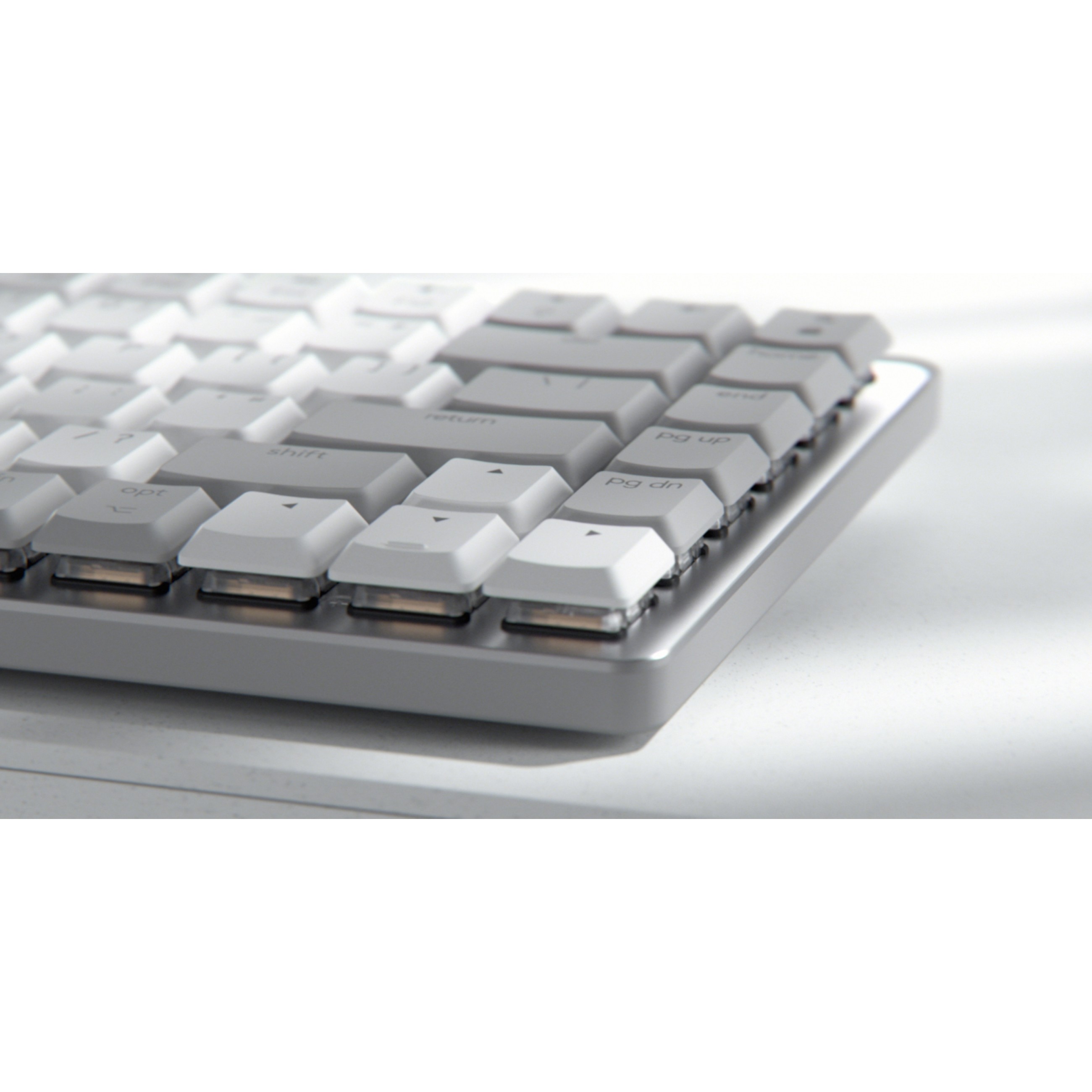 Logitech Master MX Mechanical Mini for Mac. Tastatur Formfaktor: Tenkeyless (80 - 87 %). Tastatur-Stil: Gerade. Übertragungstechnik: Kabellos, Geräteschnittstelle: RF Wireless + Bluetooth, Tastatur-Switch: Mechanischer Switch, Tastaturaufbau: QWERTY. Typ der Hintergrundbeleuchtung: LED. Kabellänge: 1 m. Empfohlene Nutzung: Büro. Produktfarbe: Grau