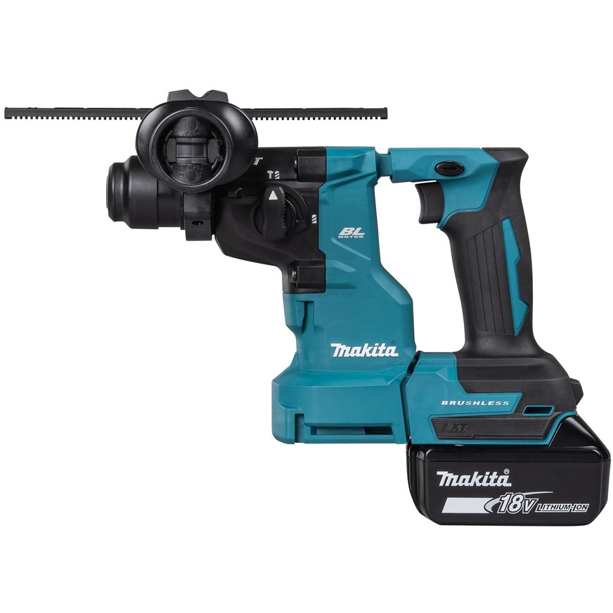 Akku-Bohrhammer für SDS-PLUS-Einsteckwerkzeuge mit bürstenlosem Motor. Mit XPT Staub- und Spritzwasserschutz. Der Handgriff ist vom Gehäuse entkoppelt für einer geringe Vibrationen beim Hammerbohren. Die Einzelschlagstärke erreicht bis zu 1,7 Joule, in Beton beträgt die Bohrleistung bis zu 18 mm. Mit Anschlussmöglichkeit für die Staubabsaugung DX16.