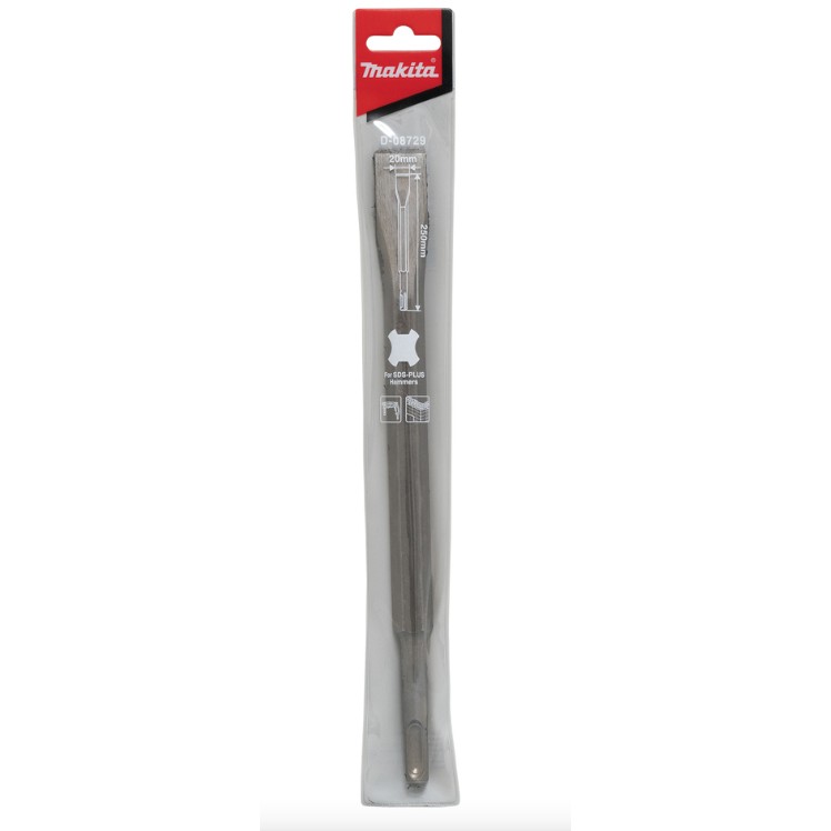 Flachmeißel für SDS-PLUS Hämmer mit einer Breite von 20mm und einer Länge von 250mm. Für allgemeine Meißel- und Abbrucharbeiten von Mauerwerk und Beton. Kein Nachschärfen nötig.