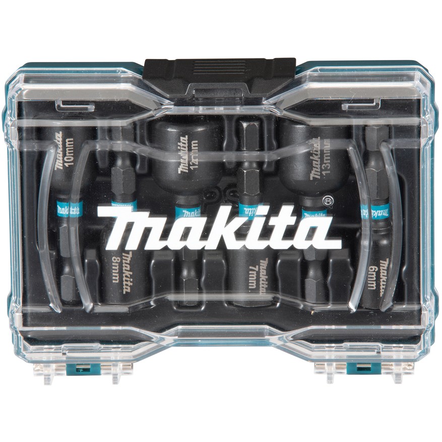 Das Steckschlüssel-Set besteht aus 6 magnetischen Einsätzen in den Größen 6, 7, 8, 10, 12 und 13 mm. Sie haben eine Länge von 50 mm sowie eine 1/4" Sechskantaufnahme wie z.B. herkömmliche Bits.