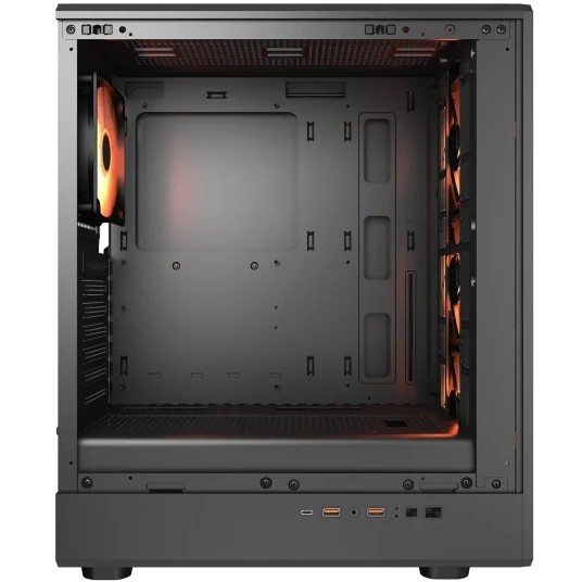 COUGAR Gaming Gehäuse Midi-Tower Airface Pure PRO, ARGB. Schwarz. Formfaktor: Midi Tower, Typ: PC, Produktfarbe: Schwarz. Installierte Lüfter (Vorderseite): 3x 120 mm, Durchmesser unterstützte Vorderseitenlüfter: 120,140 mm, Installierte Lüfter hinten: 1x 120 mm. Unterstützte Hard-Disk Drive Größen: 2.5,3.5". Breite: 220 mm, Tiefe: 375 mm, Höhe: 460 mm. Verpackungsbreite: 270 mm, Verpackungstiefe: 500 mm, Verpackungshöhe: 436 mm