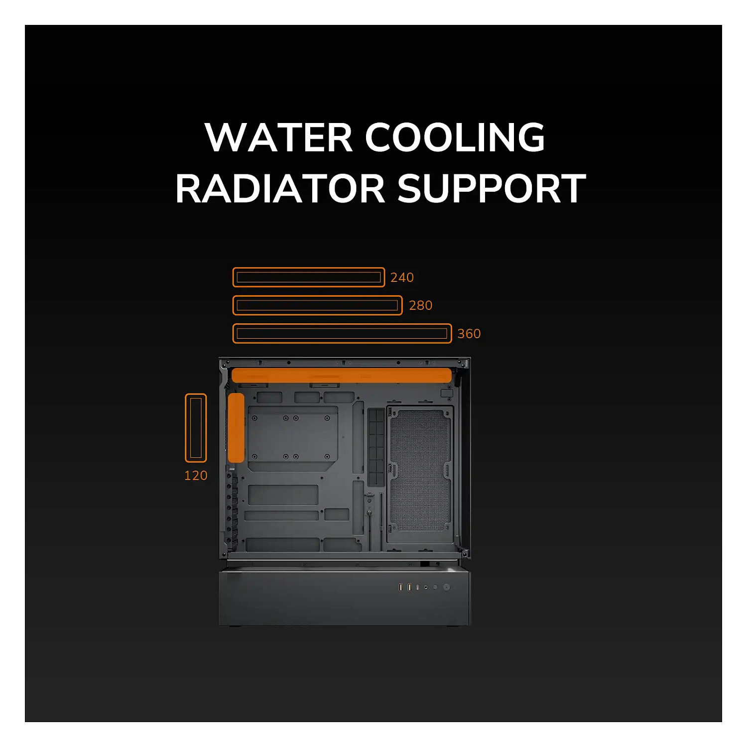Unterstützte Radiatorgrößen oben: 120,140,240,280,360 mm