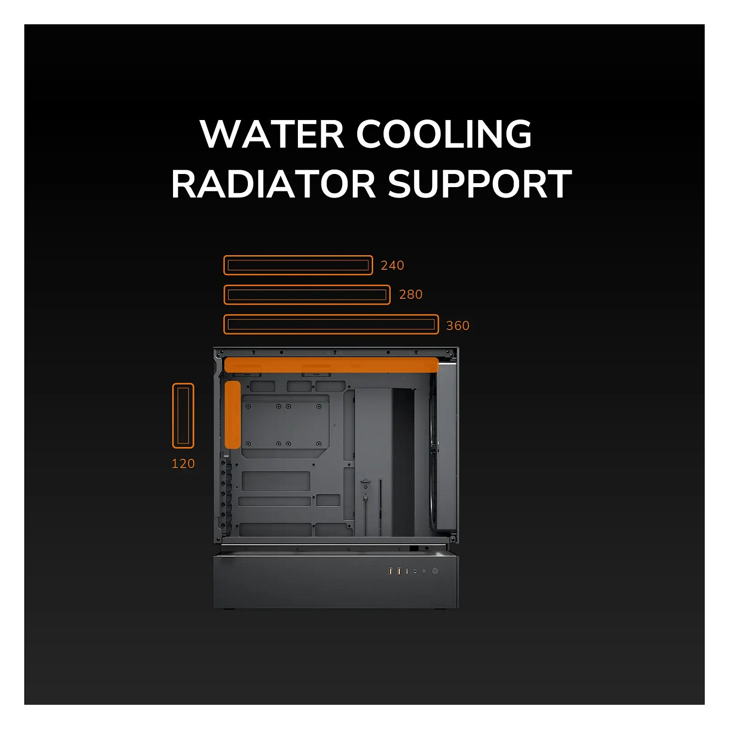 Unterstützte Radiatorgrößen oben: 120,140,280,360 mm