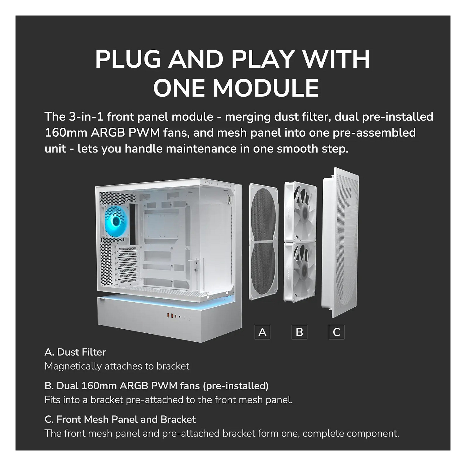 Installierte Lüfter (Vorderseite): 2x 160 mm