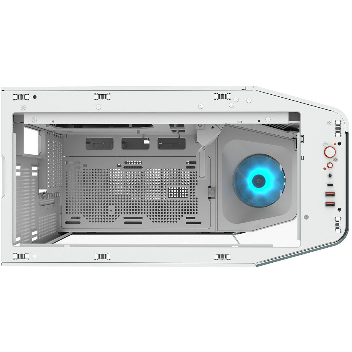 Das polyedrische Design des FV270 bringt Form und Funktion in Einklang und setzt neue Standards für die Luftstromdynamik. Die Platzierung der Kühllüfter auf schrägen Flächen sorgt für einen ununterbrochenen, fokussierten Luftstrom. Die erhöhte Vorderseite bietet eine zusätzliche Belüftungsachse, die den Lufteinlass von unten ermöglicht.