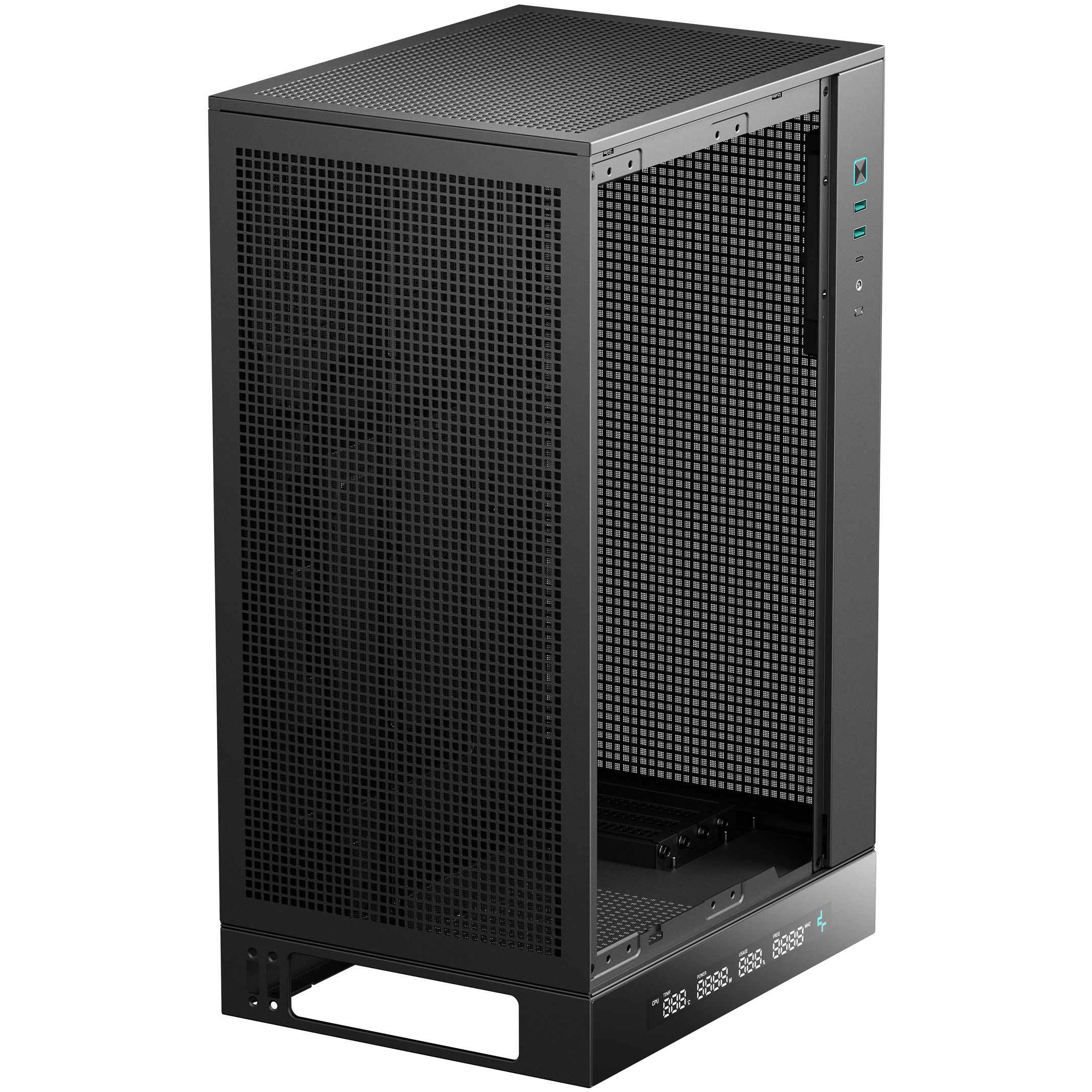 DeepCool CH270 Digital. Formfaktor: Mini Tower, Typ: PC, Produktfarbe: Schwarz. Unterstützte Stromversorgungs-Formfaktoren: ATX. Durchmesser unterstützte Seitenlüfter: 120,240 mm, Unterstützte Lüfterdurchmesser (oben): 120 mm, Durchmesser unterstützte Unterlüfter: 120 mm. Unterstützte Hard-Disk Drive Größen: 2.5,3.5". Breite: 225 mm, Tiefe: 296 mm, Höhe: 486 mm