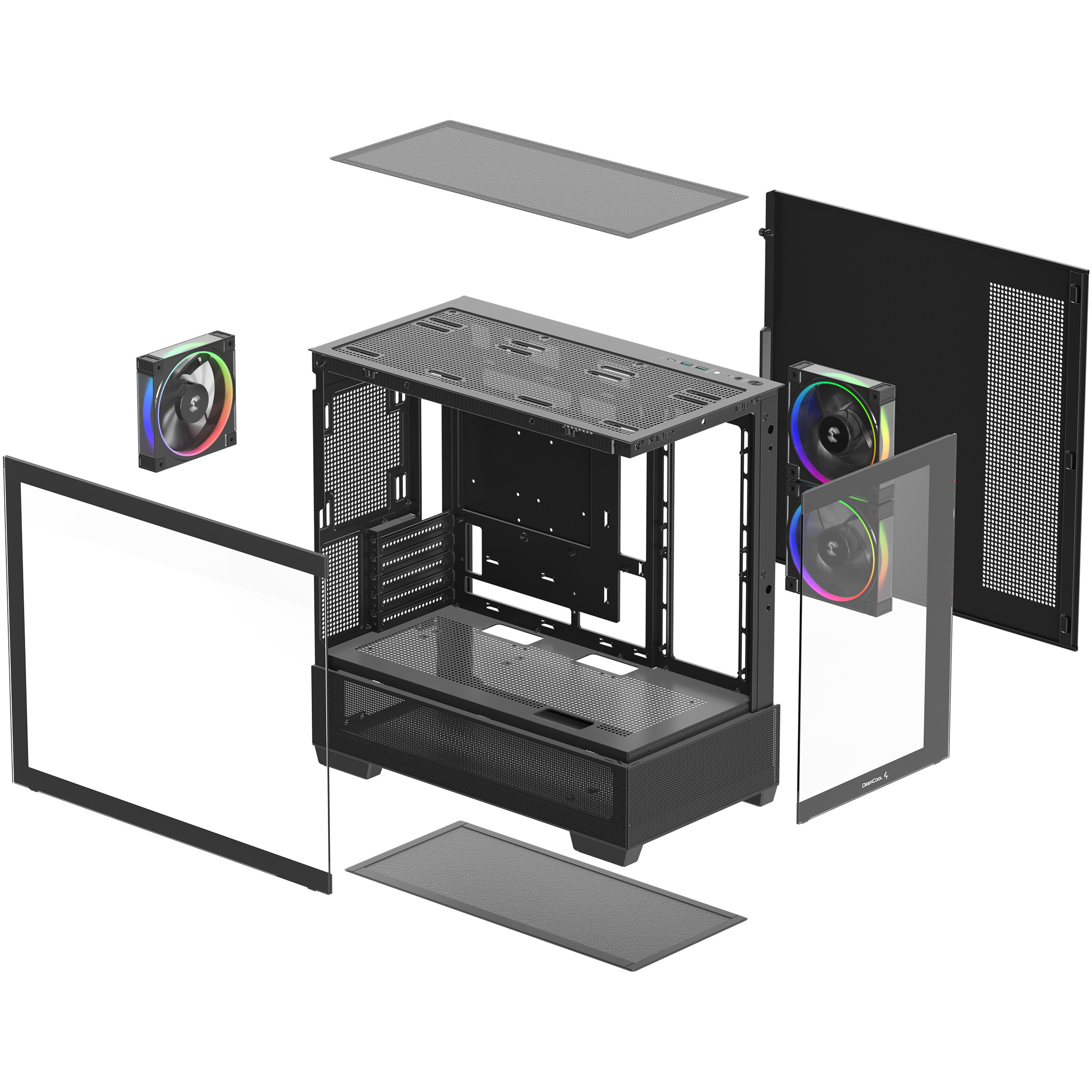Das CG380 3F ist ein Micro-ATX-Panoramagehäuse, das Form und Funktion in einer platzsparendem Bauweise vereint. Mit drei vorinstallierten PWM-ARGB-Lüftern ist es die erste Wahl für ein lebendiges Ambiente mit zuverlässigem Luftstrom.