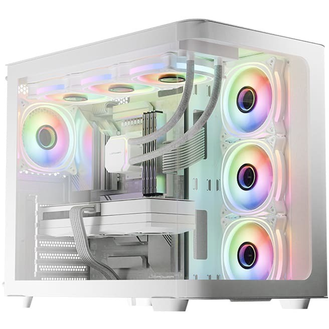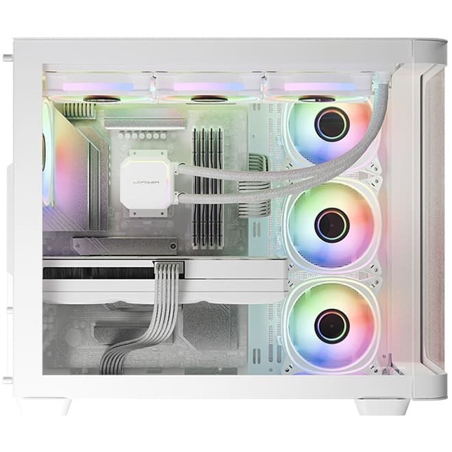 LC-Power LC-8001W-ON. Formfaktor: Midi Tower, Typ: PC, Produktfarbe: Weiß. Platzierung der Stromversorgung: Seite, Unterstützte Stromversorgungs-Formfaktoren: ATX. Durchmesser unterstützte Vorderseitenlüfter: 120 mm, Unterstützte Lüfterdurchmesser (oben): 120,140 mm. Unterstützte Hard-Disk Drive Größen: 2.5", SSD-Formfaktor: 3.5". Breite: 285 mm, Tiefe: 470 mm, Höhe: 400 mm