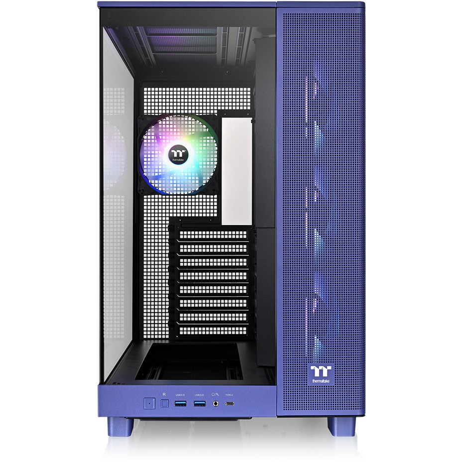Thermaltake CA-11E-00MNWN-00. Formfaktor: Midi Tower, Typ: PC, Produktfarbe: Blau. Unterstützte Stromversorgungs-Formfaktoren: PS2. Installierte Lüfter seitlich: 3x 120 mm, Durchmesser unterstützte Seitenlüfter: 120 mm, Installierte Lüfter hinten: 1x 120 mm. Breite: 288 mm, Tiefe: 469 mm, Höhe: 471 mm