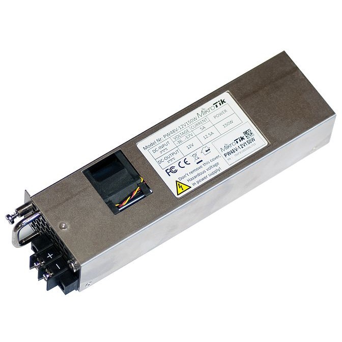 Mikrotik PW48V-12V150W. Zweck: Router, Eingangsspannung: -36 - 57 V, Ausgangsleistung: 150 W. Produktfarbe: Schwarz, Grau, Silber. Konformitätsbescheinigungen: RoHS, Zertifizierung: FCC, CE
