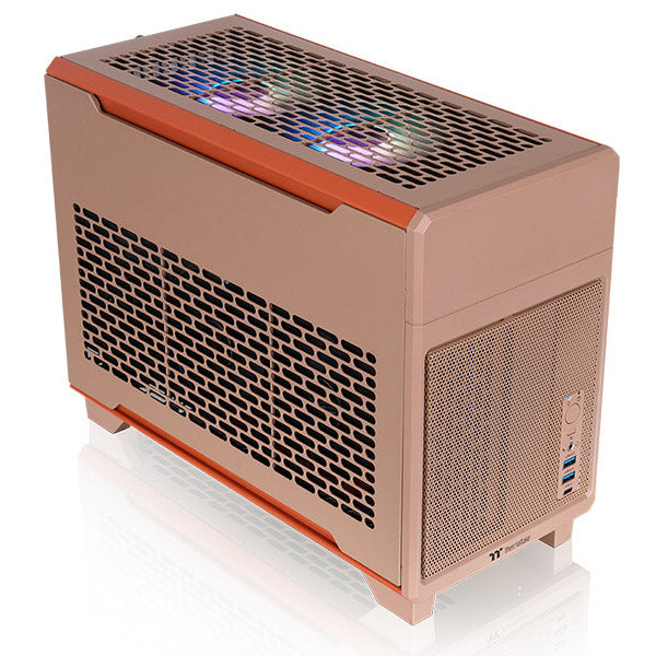 Thermaltake TR100. Formfaktor: Mini Tower, Typ: PC, Produktfarbe: Sand. Unterstützte Stromversorgungs-Formfaktoren: SFX, SFX-L. Unterstützte Lüfterdurchmesser (oben): 120,140 mm, Unterstützte Größen der seitlichen Radiatoren: 120,140,240,280 mm. SSD-Formfaktor: 2.5". Breite: 179 mm, Tiefe: 391 mm, Höhe: 294 mm