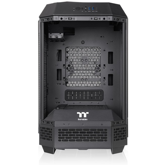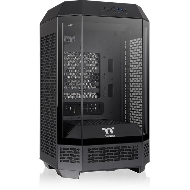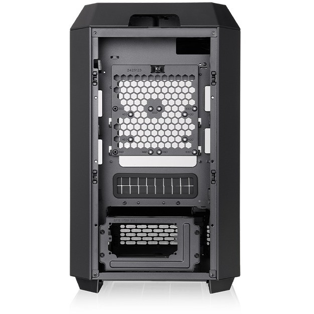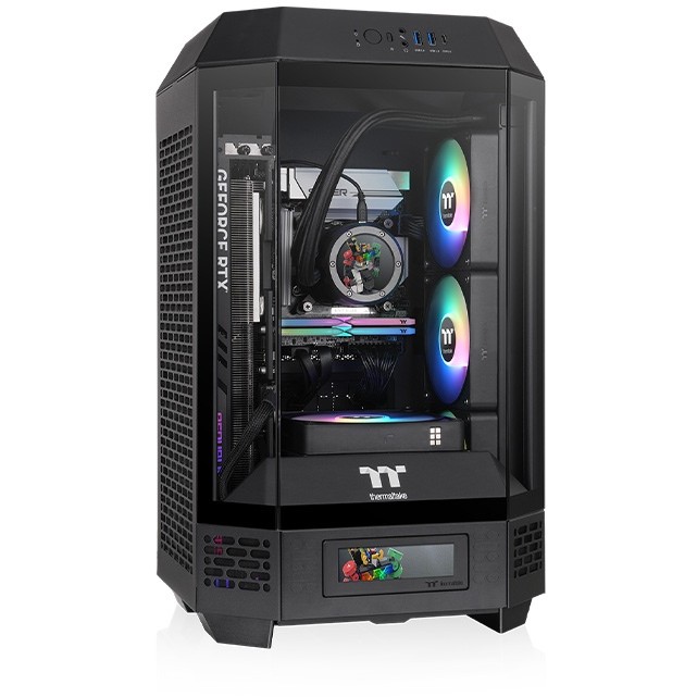 Thermaltake The Tower 250. Formfaktor: Mini Tower, Typ: PC, Produktfarbe: Schwarz, Weiß. Display-Typ: LCD, Bildschirmdiagonale: 9,91 cm (3.9"), Display-Auflösung: 128 x 480 Pixel. Installierte Lüfter (Vorderseite): 2x 120 mm, Durchmesser unterstützte Vorderseitenlüfter: 120 mm, Durchmesser unterstützte Seitenlüfter: 120,140 mm. Unterstützte Hard-Disk Drive Größen: 2.5,3.5". Breite: 300 mm, Tiefe: 281 mm, Höhe: 506 mm
