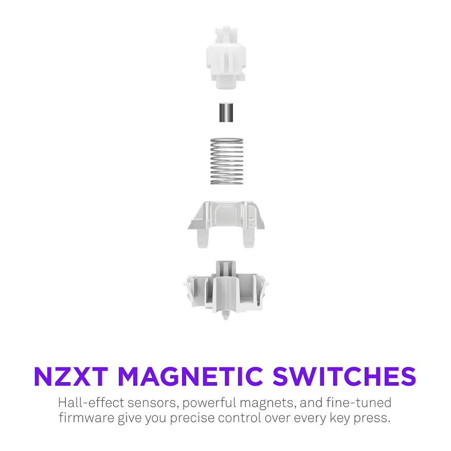 NZXT KB-101NW-DE. Tastatur Formfaktor: Mini. Tastatur-Stil: Gerade. Übertragungstechnik: Kabelgebunden, Geräteschnittstelle: USB, Tastatur-Switch: Magnetic-mechanical key switch. Typ der Hintergrundbeleuchtung: RGB-LED. Kabellänge: 2 m. Empfohlene Nutzung: Gaming. Produktfarbe: Weiß