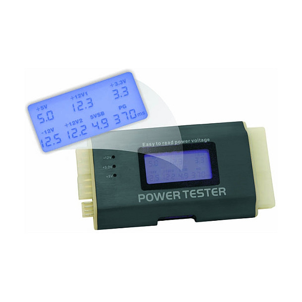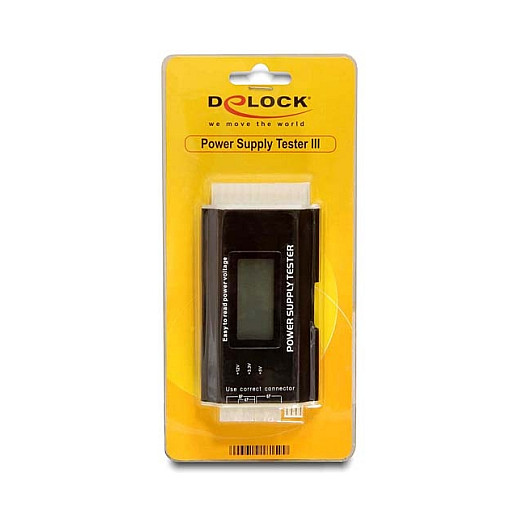 Der Delock Netzteiltester ist ein robuster Spannungstester für PC-Netzteile. Es lassen sich ATX, BTX und ITX konforme Netzteile testen. Das Gerät zeigt in einem Display alle Versorgungsspannungen mit einer Nachkommastelle an. Fehler quittiert es mit einem Warnton. Der Power Tester eignet sich für den ambitionierten Hobbyanwender sowie für die schnelle Funktionsprüfung im Fachhandel.