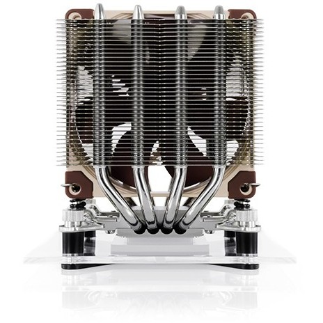 Der NH-D9L ist ein Premium-Kühler in Doppelturm-Bauweise, der bei einer Gesamthöhe von nur 110mm hervorragende Silent-Kühlleistung bietet. Die vergleichsweise geringe Bauhöhe (15mm weniger als klassische 9cm Kühler wie der NH-U9S) garantiert dabei nicht nur volle 3U-Kompatibilität, sondern macht den NH-D9L zugleich zu einer idealen Lösung für kompakte HTPC und Small Form Factor Gehäuse, bei denen der Luftstrom parallel zum Mainboard verläuft. Dank seiner Grundfläche von 95x95mm hängt der NH-D9L auf allen Intel und den meisten AMD basierten ITX Mainboards nicht über die Speicherbänke oder PCIe Slots. Für hervorragende Laufruhe sorgt der der mitgelieferte NF-A9 Premium-Lüfter, dessen Geschwindigkeit vollautomatisch über PWM geregelt werden kann. Mit einem zweiten, optional erhältlichen NF-A9 Lüfter kann die Kühlleistung im Doppellüfterbetrieb noch weiter verbessert werden. Das rundum hochwertige Gesamtpaket mit dem bewährten SecuFirm2™ Multi-Sockel Montagesystem, Noctuas renommierter NT-H1 Wärmeleitpaste und vollen 6 Jahren Herstellergarantie machen den NH-D9L zu einer erstklassigen Wahl für beengte Platzverhältnisse.