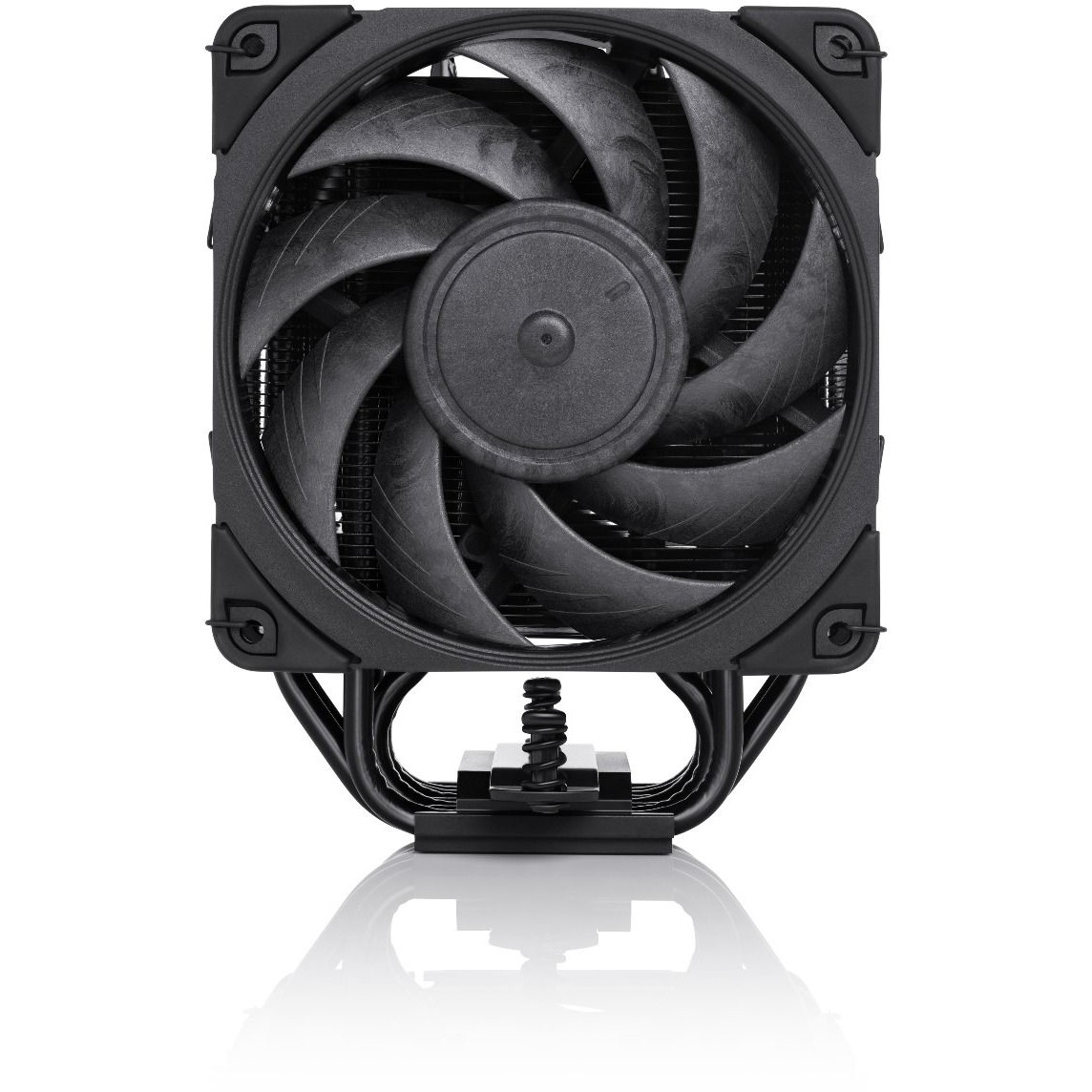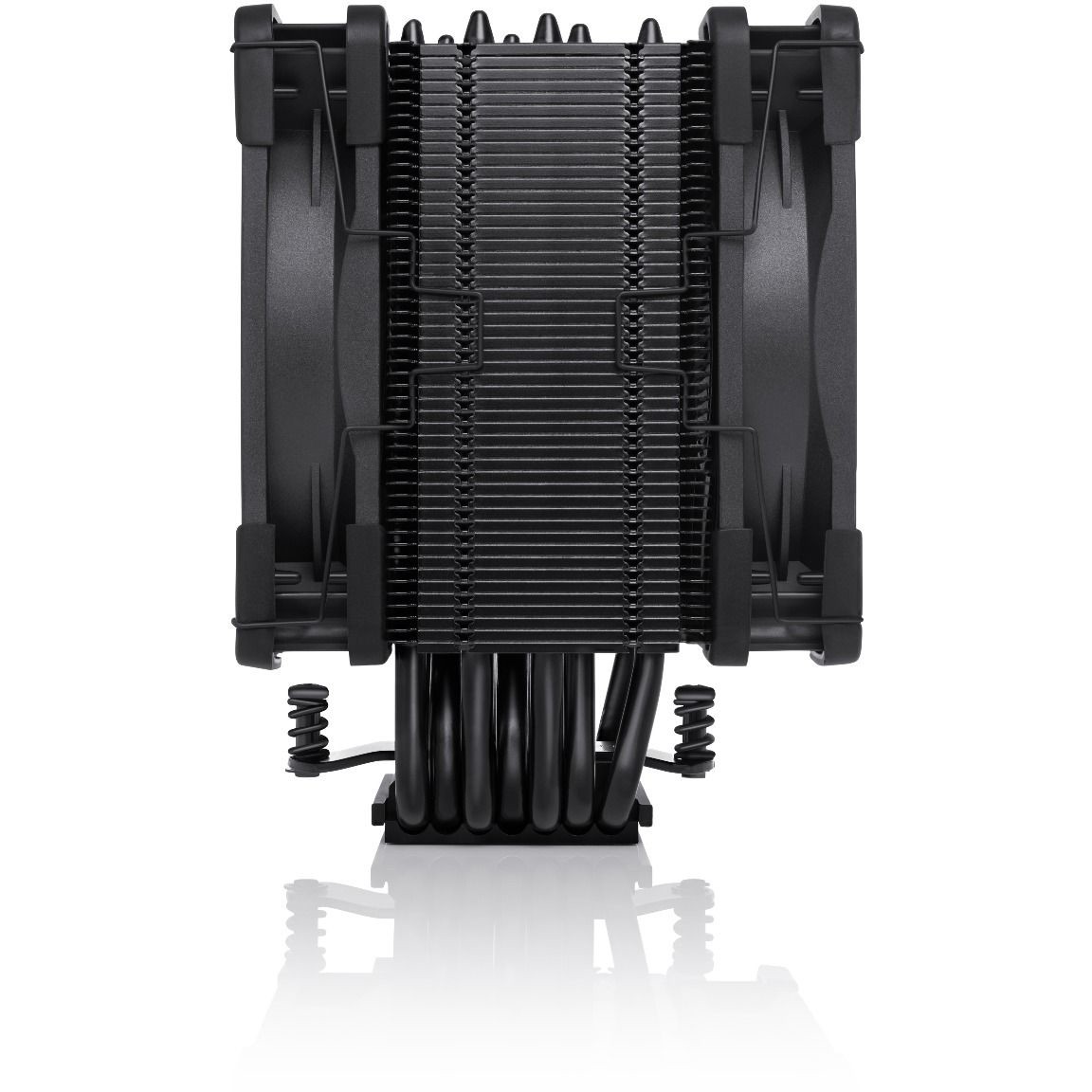 Der NH-U12A chromax.black ist eine komplett in Schwarz gehaltene Version von Noctuas flüsterleisem, vielfach ausgezeichnetem Premium-Kühler NH-U12A. Das Erfolgsrezept bleibt dank des gleichen asymmetrischen Einzelturm-Kühlkörpers und der Konfiguration mit zwei Exemplaren des Flaggschiff-Lüfters NF-A12x25 PWM unverändert: eine einzigartige Synthese von klassenbester Kühlleistung, exzellenter Laufruhe und hervorragender Speicher-, Gehäuse- und PCIe-Kompatibilität. Die chromax.black Version mit ihrem schwarzen Lüfter und schwarz beschichteten Kühlkörper kombiniert diese Vorzüge überdies mit einem schicken Stealth-Design. Komplettiert wird das rundum hochwertige Gesamtpaket durch das renommierte Multi-Sockel-Montagesystem SecuFirm2™, Noctuas beliebte NT-H1 Wärmeleitpaste sowie volle 6 Jahre Herstellergarantie – eine echte Premium-Lösung für anspruchsvolle Anwender, die einen hochkompatiblen 120mm-Kühler suchen, der nicht nur mit der Leistung von 140mm-Modellen konkurrieren kann, sondern dabei auch noch genauso gut aussieht wie er kühlt!
