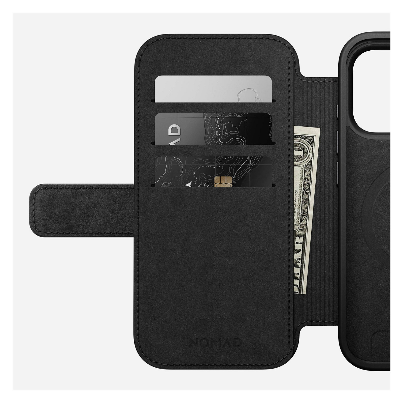 Nomad Modern Leather Folio. Etui-Typ: Folio, Markenkompatibilität: Apple, Kompatibilität: iPhone 17 Pro, Maximale Bildschirmgröße: 16 cm (6.3"), Oberflächenfärbung: Einfarbig, Produktfarbe: Beige, Anzahl der Kartentaschen: 3