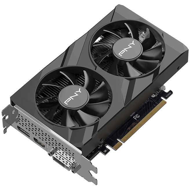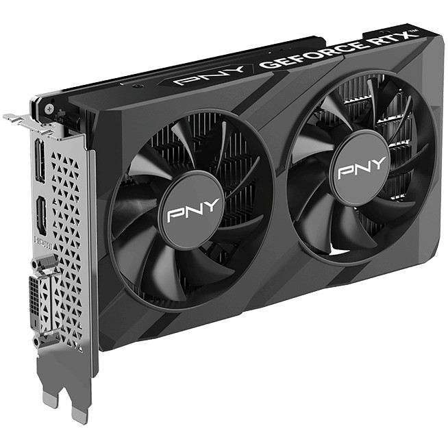PNY GeForce RTX 3050 VERTO. Grafikprozessorenfamilie: NVIDIA, GPU: GeForce RTX 3050, Prozessortaktfrequenz: 1042 MHz. Separater Grafik-Adapterspeicher: 6 GB, Grafikkartenspeichertyp: GDDR6, Breite der Speicherschnittstelle: 96 Bit. Maximale Auflösung: 7680 x 4320 Pixel. DirectX-Version: 12 Ultimate, OpenGL-Version: 4.6, Dual-Link-DVI. Schnittstelle: PCI Express x16 4.0. Kühlung: Aktiv, Anzahl Lüfter: 2 Lüfter