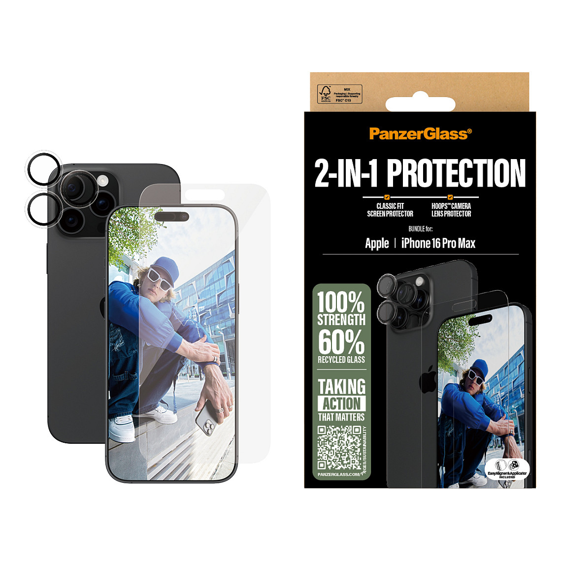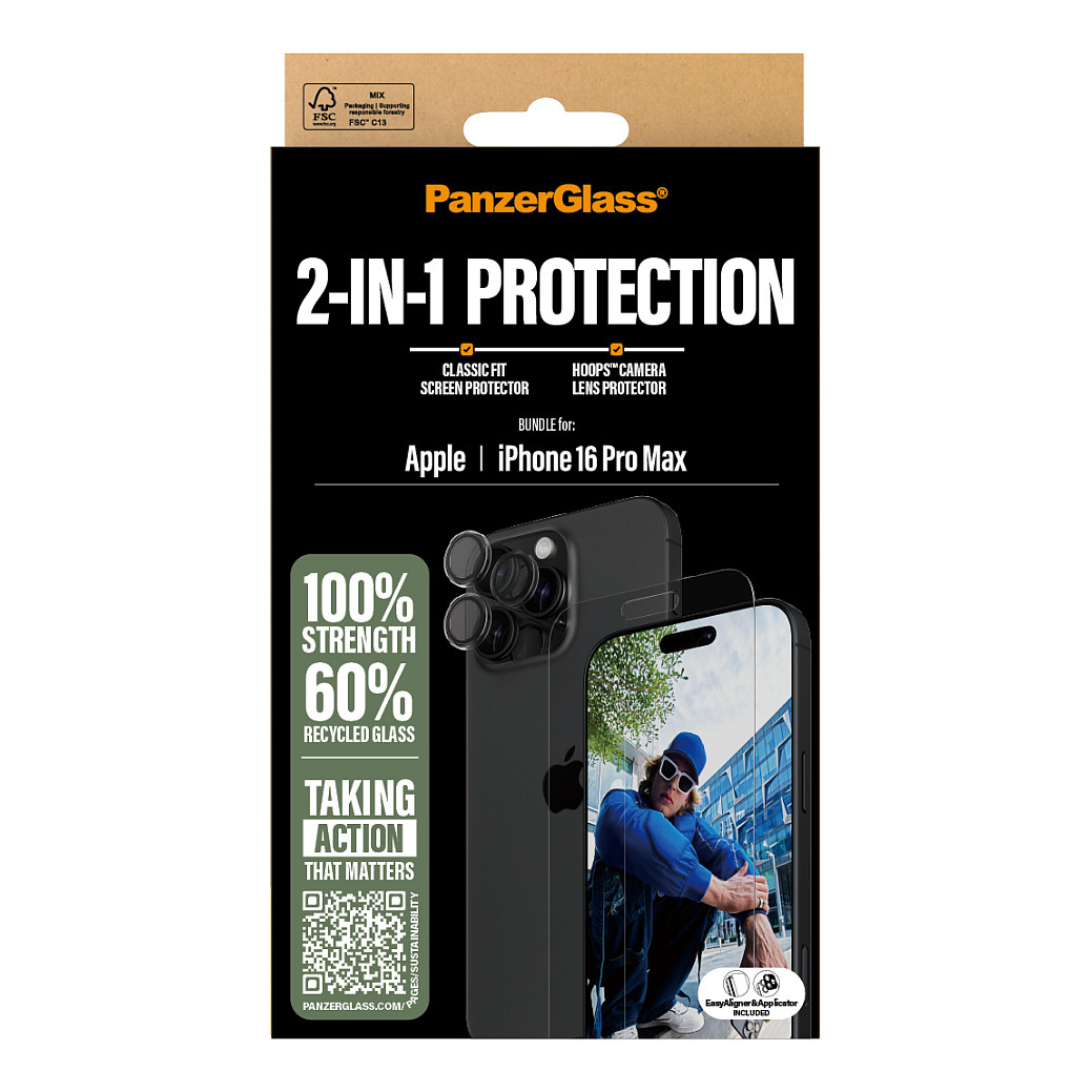 Liebst du deine Kamera? Liebst du dein Display? Dann ist dieses 2-in-1-Schutzpaket von PanzerGlass® genau das Richtige für dich! Der Displayschutz, der zu 60 % aus recyceltem Material besteht, und der Hoops® Kameralinsenschutz halten dein Display und deine Linsen sicher vor unbeabsichtigten Stößen gegen scharfkantige Tischkanten, harten Stürzen auf steinharte Bürgersteige und anderen Gefahren des Alltags. Der Displayschutz hat sogar eine wischfeste Beschichtung mit antibakterieller Wirkung, die Fingerabdrücke reduziert.