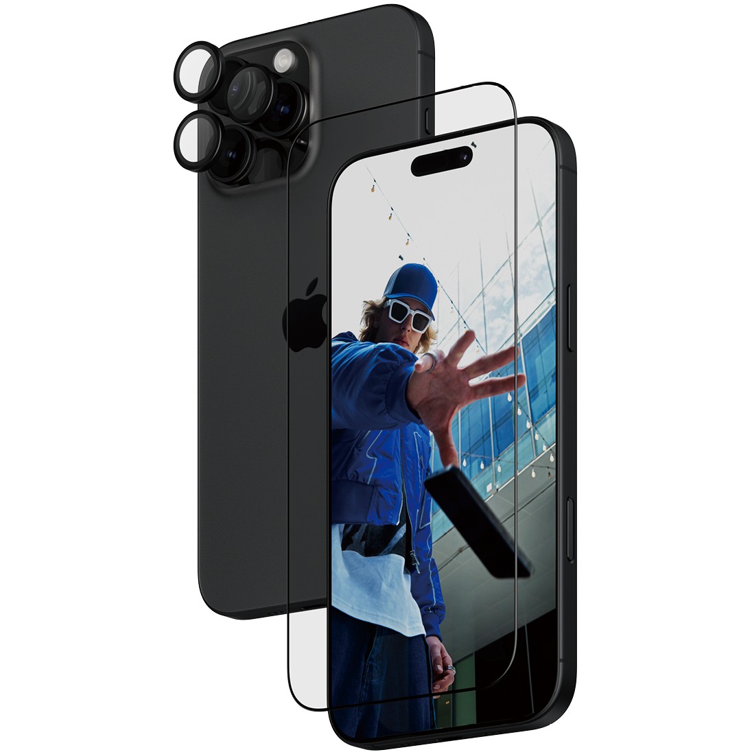 Der Displayschutz besteht zu 60 % aus recyceltem Material und bietet eine extrem hohe Kratzfestigkeit. Und was ist mit dem Hoops®? Es bewahrt deine Kameralinsen vor Kratzern und Rissen, die bleibende Narben auf allen zukünftigen Fotos hinterlassen würden.