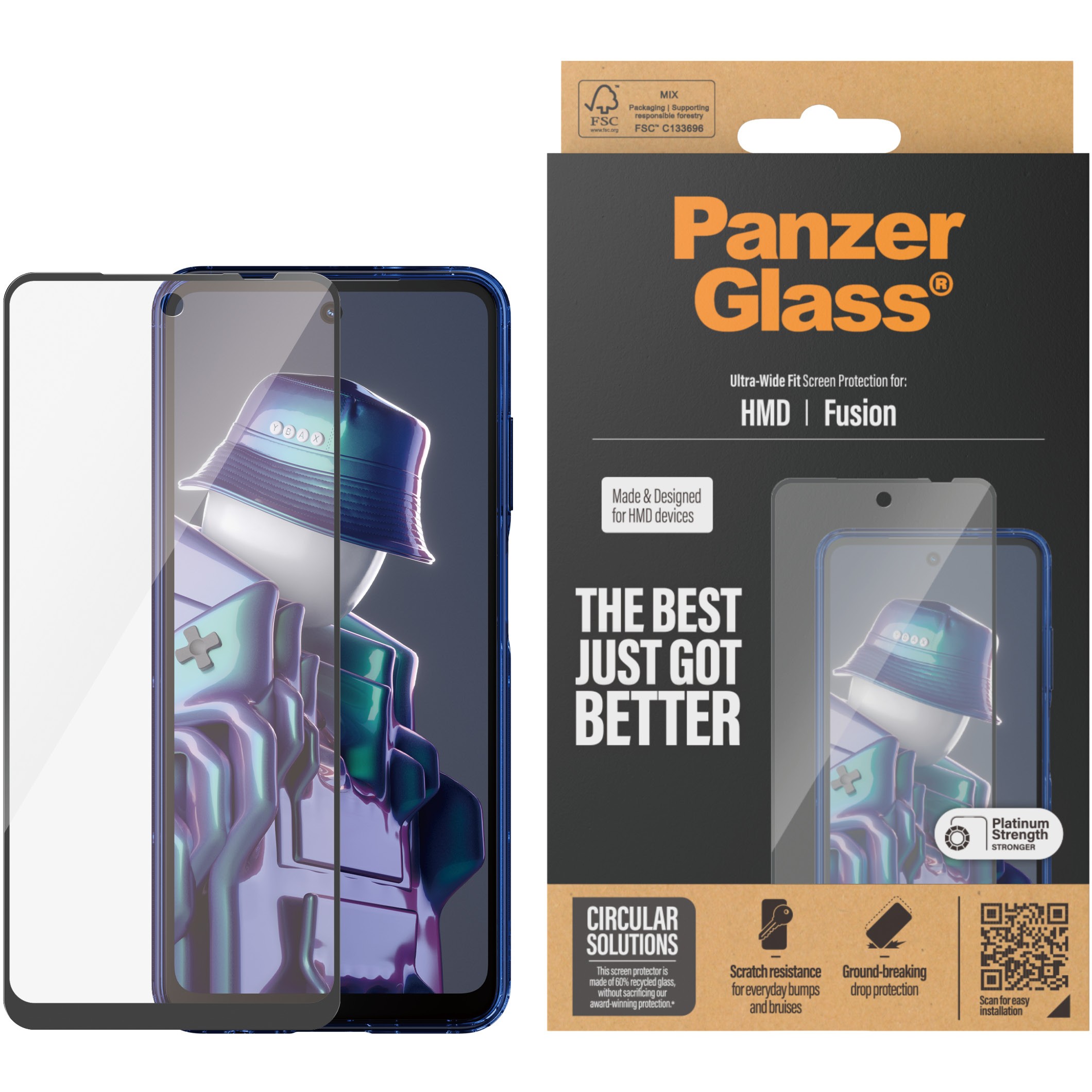 Der Displayschutz ist Ultra-Wide Fit, das bedeutet, dass er die Vorderseite deines Handys abdeckt und eine vollständige und kristallklare Sicht auf dein Display bietet, während an den Rändern noch etwas Platz für eine PanzerGlass®-Hülle bleibt. Wenn du einen 360-Grad-Schutz für dein Handy möchtest, kombiniere den Displayschutz und die Hülle mit einem PanzerGlass® PicturePerfect oder Hoops Kameraschutz.