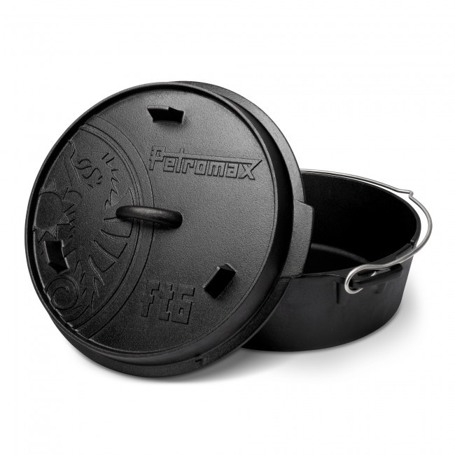 Den Petromax Feuertopf gibt es in mehreren Größen, sodass für das jeweilige Rezept oder Personenanzahl der passende Topf ausgewählt werden kann. Alle Feuertopf-Größen sind mit Standfüßen oder aber mit planem Boden erhältlich. In der Ausführung ft6 ohne Standfüße hat der Feuertopf ein Fassungsvermögen von ca. 5,5 Litern. Damit können Gerichte für 4 bis 8 Personen zubereitet werden. Für den Petromax Feuertopf ist neben dem Deckelheber weiteres Zubehör erhältlich, wie die Transport- und Aufbewahrungstasche, die Pflegepaste und zum Säubern von Gusseisen den Ringreiniger. Außerdem bieten wir Untersetzer und Einsätze aus Gussrost an, die vor allem das Garen und Backen ohne Anbrennen ermöglichen.