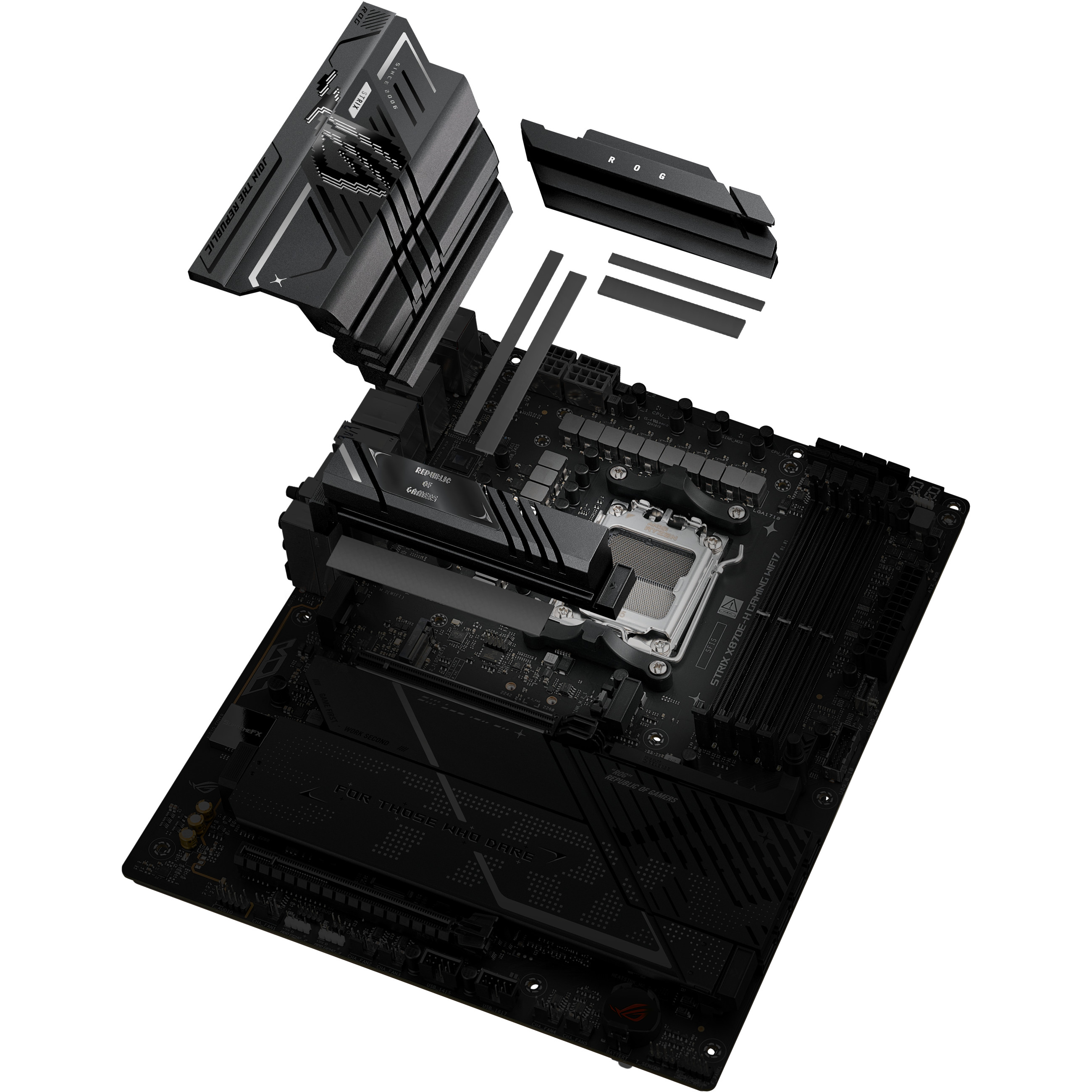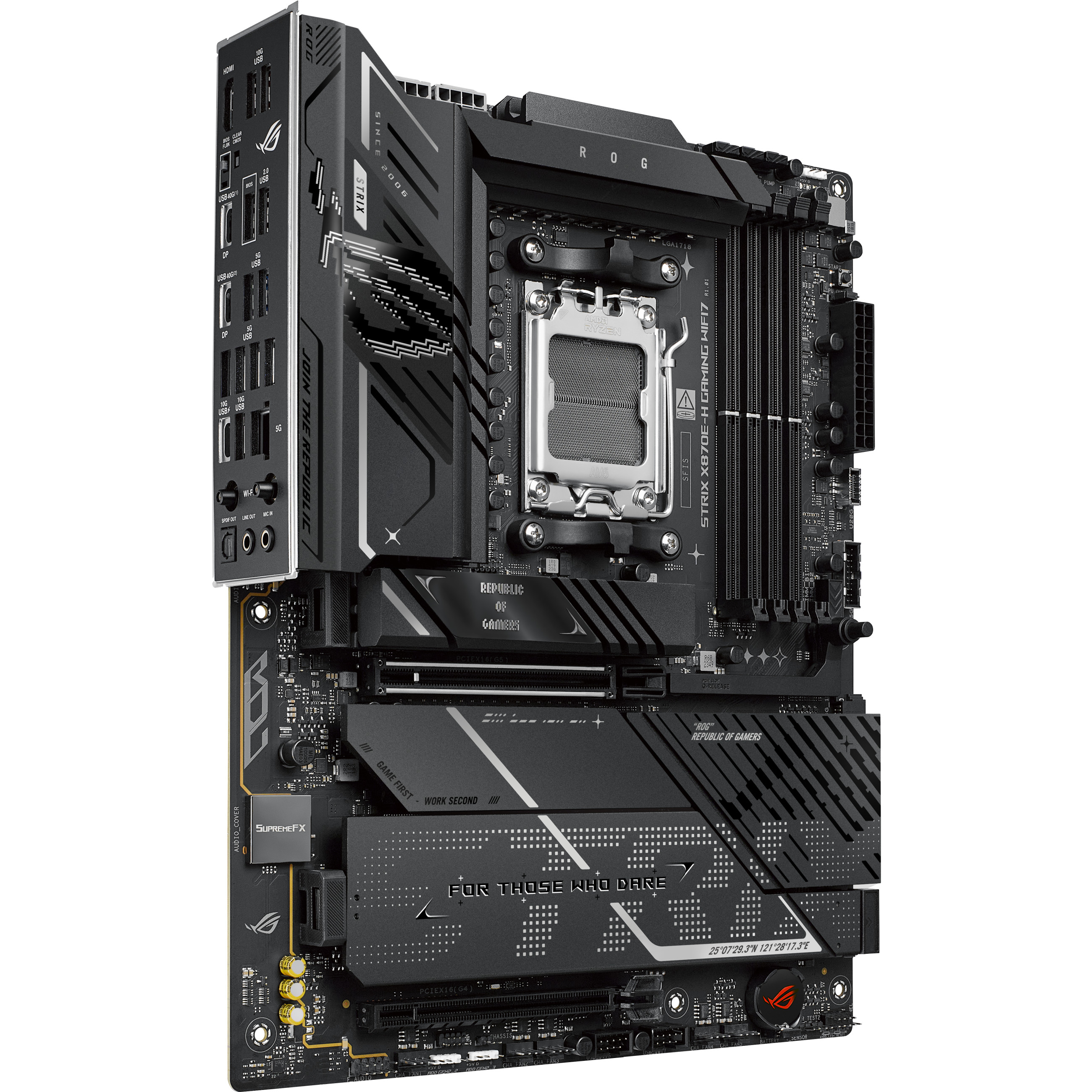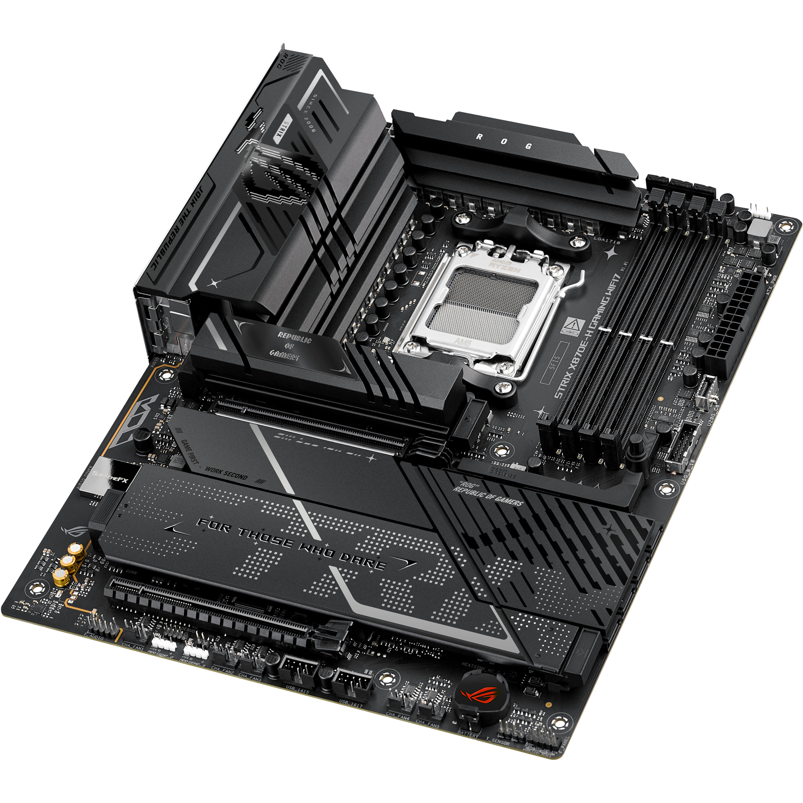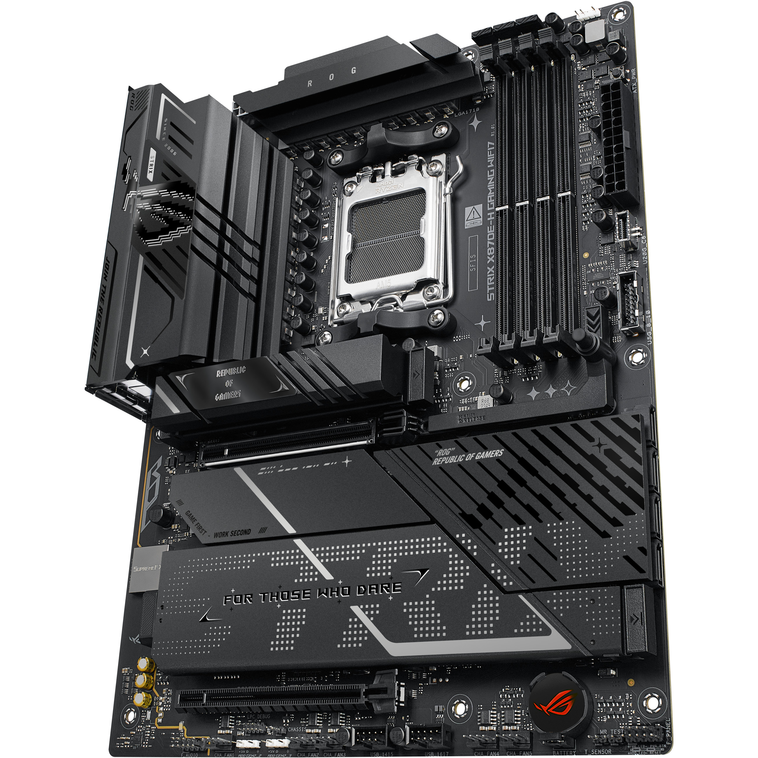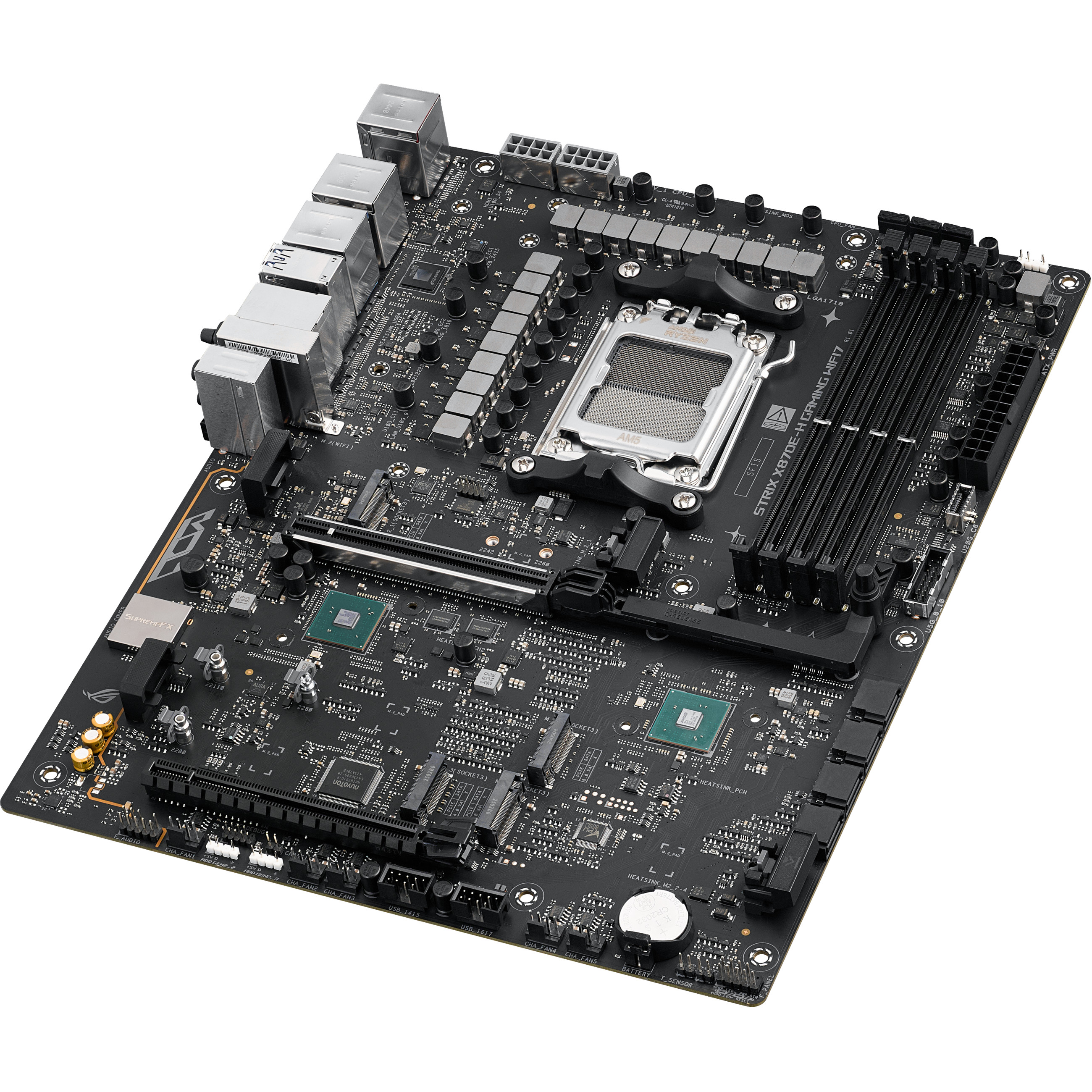 Verwandle dein Spielerlebnis mit dem ROG STRIX X870E-H GAMING WIFI7 Mainboard. Dieses ATX-Kraftpaket wurde entwickelt, um mit AMD Ryzen™ 9000 Series Desktop-Prozessoren zu dominieren, und zeichnet sich durch ein hochmodernes Energiedesign und KI-unterstützte Lösungen aus. Mit PCIe 5.0 x16-Steckplätzen, zwei USB4® Type-C-Anschlüssen und WiFi 7 bietet es fortschrittliche Konnektivität. DIY-freundliche Funktionen wie M.2 Q-Release an allen vier M.2-Steckplätzen und PCIe Slot Q-Release machen das Bauen und Aufrüsten mühelos. Entfessle das volle Potenzial deines Systems mit dem ROG STRIX X870E-H GAMING WIFI7.