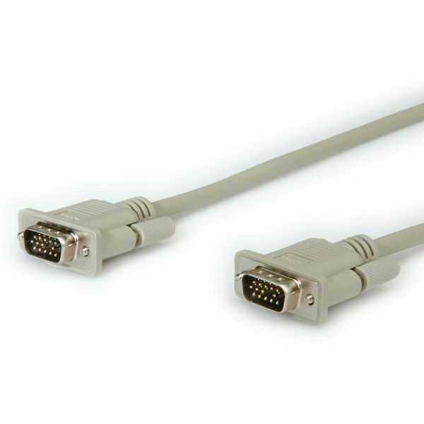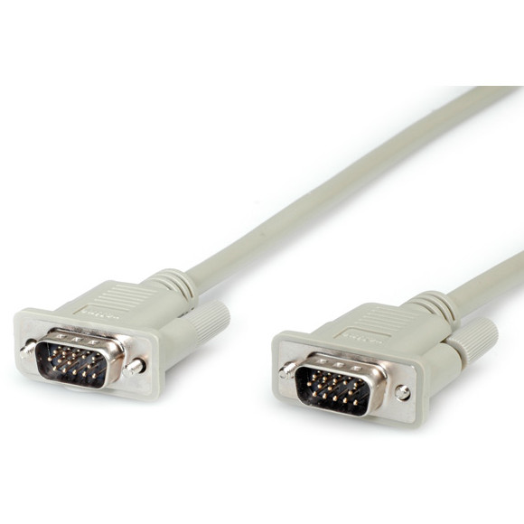 Kabel zum Anschliessen eines Monitors an eine Grafikkarte oder einen VGA-Verteiler14 Leitungen und zusätzlich eine Abschirmleitung, die mit dem Folienschirm des Kabels und beiden Steckern verbunden istSteckergehäuse vergossenHandverriegelungsschrauben.