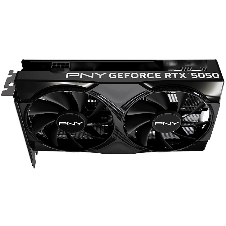 PNY GeForce RTX 5050. Grafikprozessorenfamilie: NVIDIA, GPU: GeForce RTX 5050, Prozessortaktfrequenz: 2317 MHz. Separater Grafik-Adapterspeicher: 8 GB, Grafikkartenspeichertyp: GDDR6, Breite der Speicherschnittstelle: 128 Bit. Maximale Auflösung: 7680 x 4320 Pixel. DirectX-Version: 12 Ultimate, OpenGL-Version: 4.6. Schnittstelle: PCI Express x8 5.0. Kühlung: Aktiv, Anzahl Lüfter: 2 Lüfter