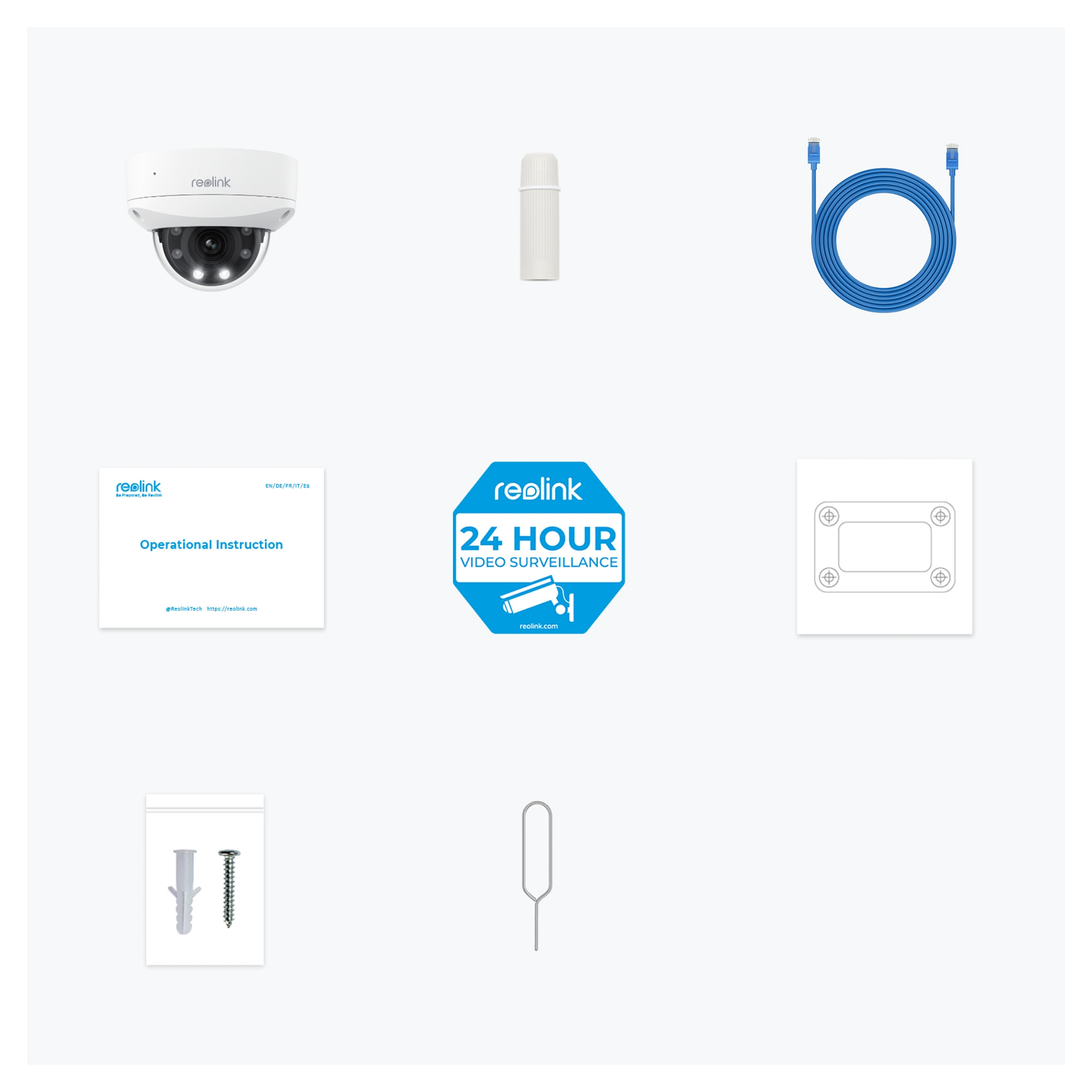 Reolink P437. Typ: IP-Sicherheitskamera, Unterstützte Positionierung: Innen & Außen, Übertragungstechnik: Kabelgebunden. Befestigungstyp: Zimmerdecke, Produktfarbe: Weiß, Formfaktor: Dome. Betrachtungswinkel (horizontal): 31 - 100°, Betrachtungswinkel (vertikal): 17 - 55°, Betrachtungswinkel des Objektivs, diagonal: 39 - 123°. Sensor-Typ: CMOS, Größe des Bildsensors: 25,4 / 2,8 mm (1 / 2.8"). Optischer Zoom: 5x, Brennweitenbereich: 2.7 - 13.5 mm