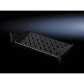 Geräteboden 2 HE, Festeinbau zur Befestigung an der Systemlochung von 19"-Profilschienen. Belastbarkeit: 25 kg.