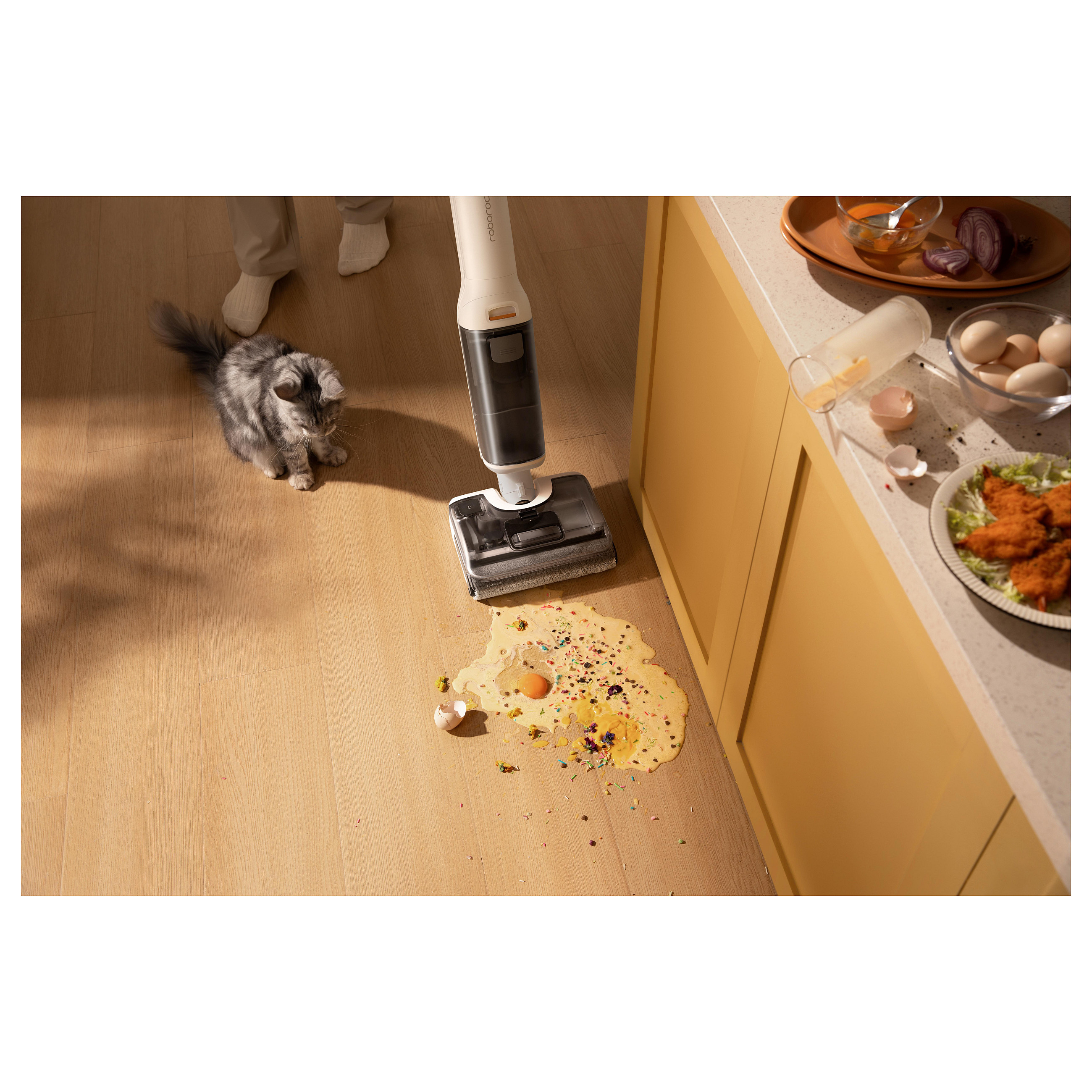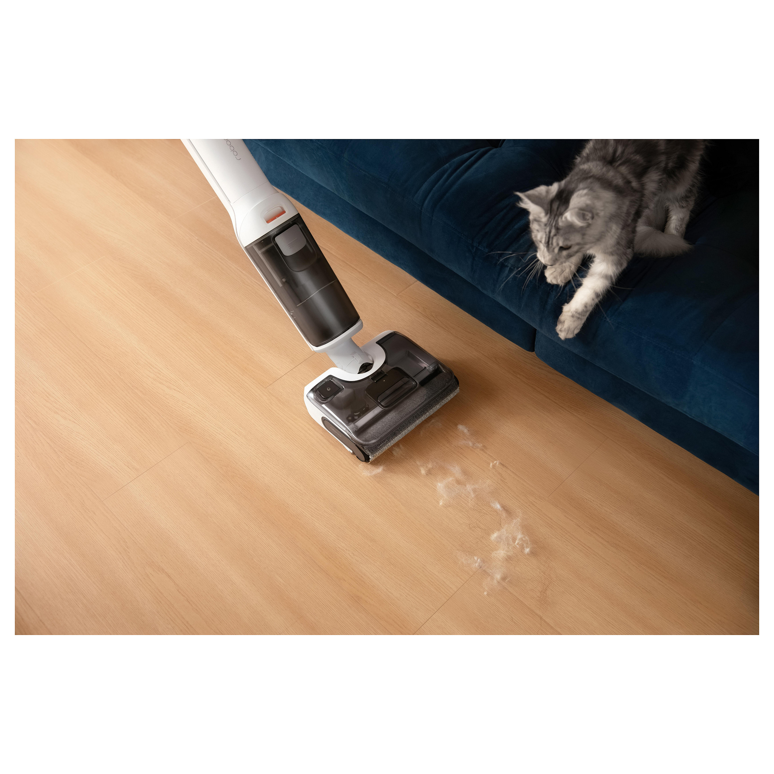 Mit seinem niedrigen Schwerpunkt und dem 70°-Schwenkdesign gleitet er mühelos um Möbel und Hindernisse herum und sorgt so für eine sanftere und effizientere Reinigung.