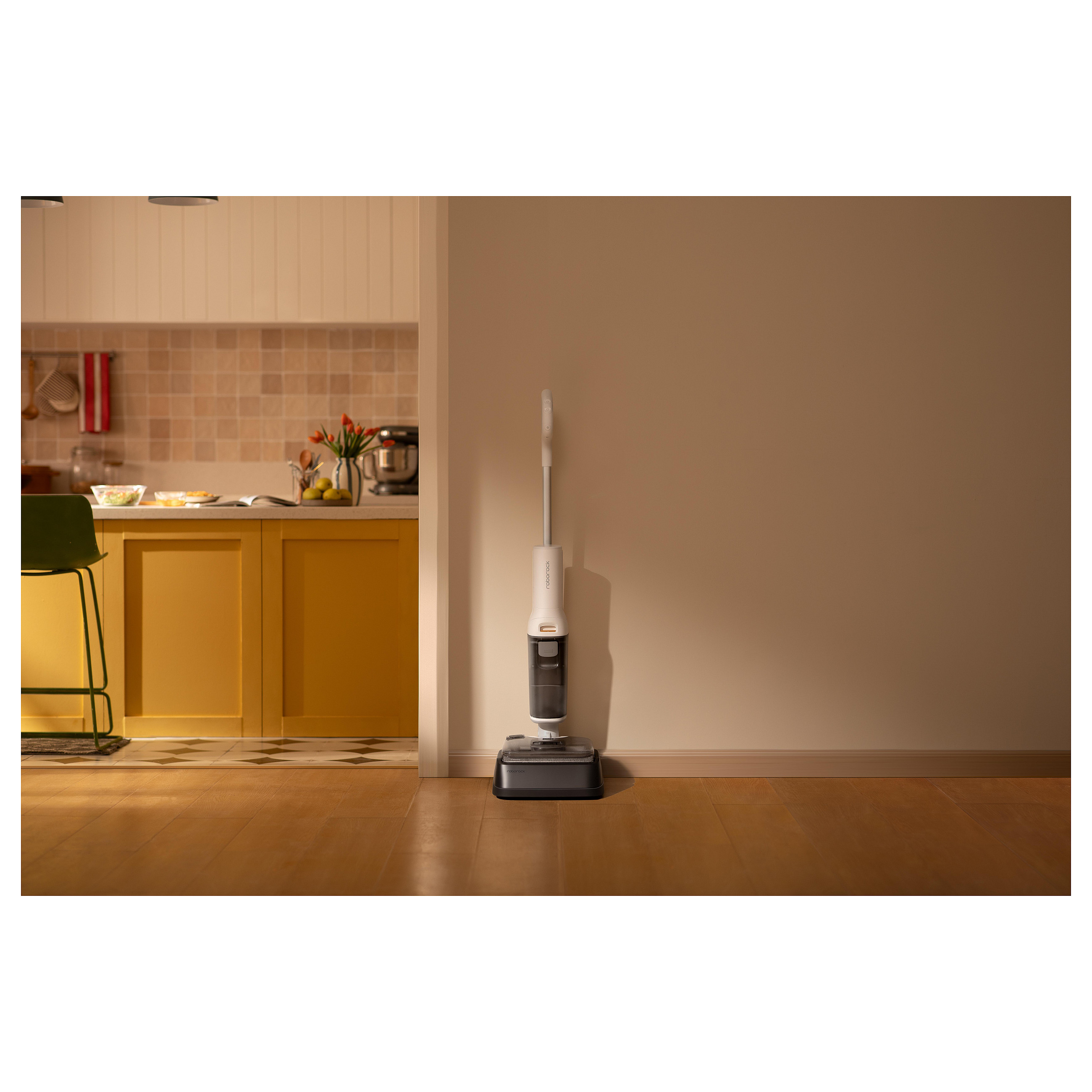 Mit dem 12,5 cm flachen Design, das auch bei einem Winkel von 0° die volle Saugkraft behält, lässt sich auch in engen Räumen gut arbeiten. Sein ultraflaches Profil erreicht jede Ecke und hinterlässt keinen Staub.
