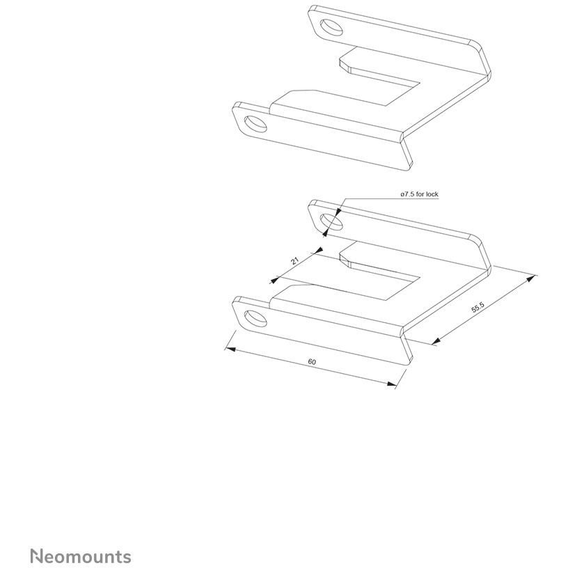 Die Neomounts ABL-875 ist eine Bremssperre für die Rollen der FL50S-825 und FL55-875 Rollwagen. Um ungewollte Bewegungen des Wagens zu verhindern, kann die Bremse der Doppelrollen mit dem ABL-875 blockiert werden. Die Schlösser können einfach an den Rädern des Wagens angebracht werden (Vorhängeschloss nicht im Lieferumfang enthalten) und verhindern, dass diese von der Bremse gelöst werden können. Die leuchtend blaue Farbe erinnert den Benutzer deutlich daran, dass die Räder blockiert sind. Das ABL-875 wird als Satz von 2 Bremsenschlössern geliefert.
